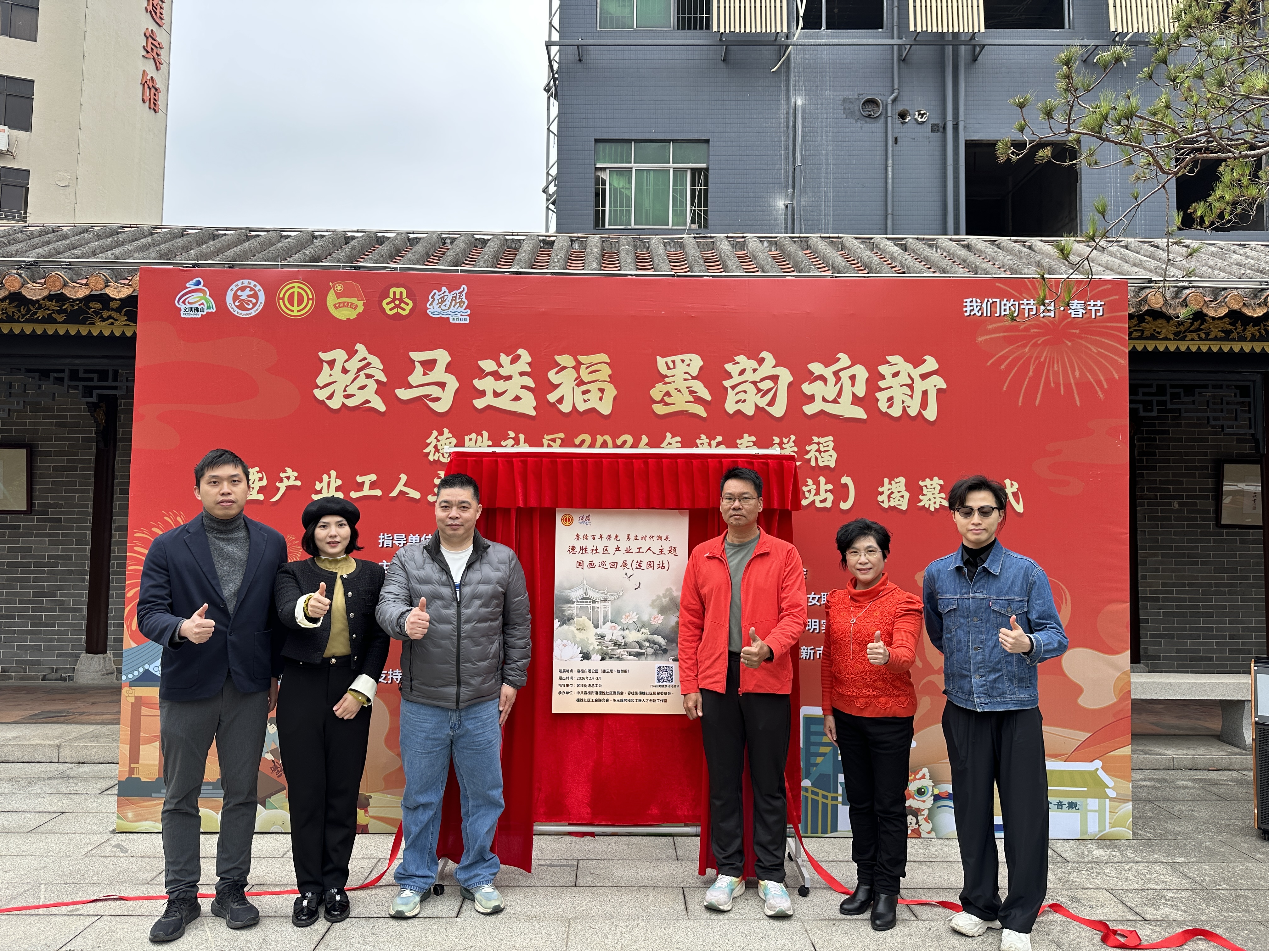 在新春佳节来临之际,1月31日下午,容桂街道德胜社区2026年新春送福暨产业工人主题国画巡回展(莲园站)在容桂白莲公园启幕,一场融合艺术与温情的文化盛宴在婉约的岭南园林中绽放。