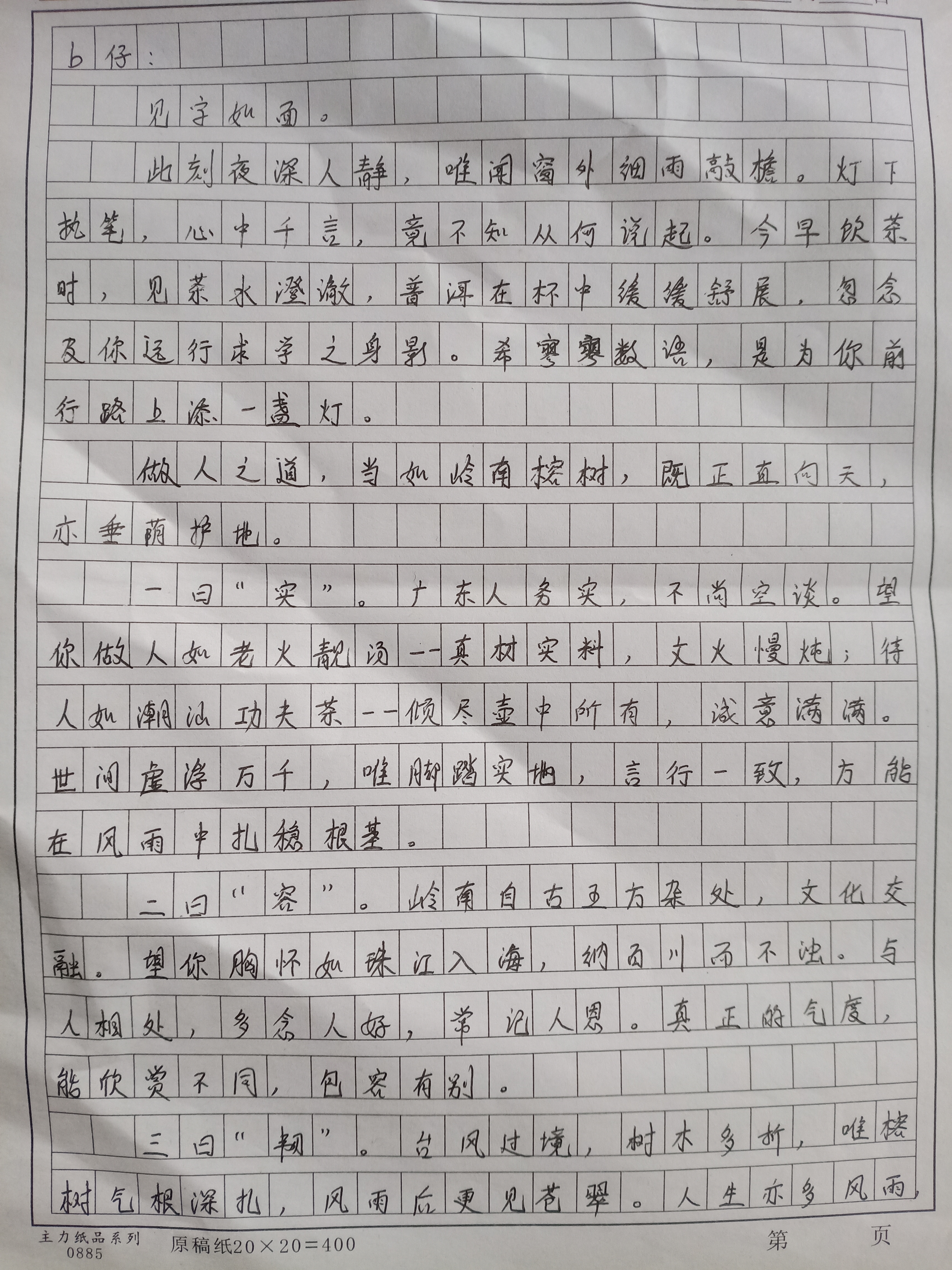手写家书范例