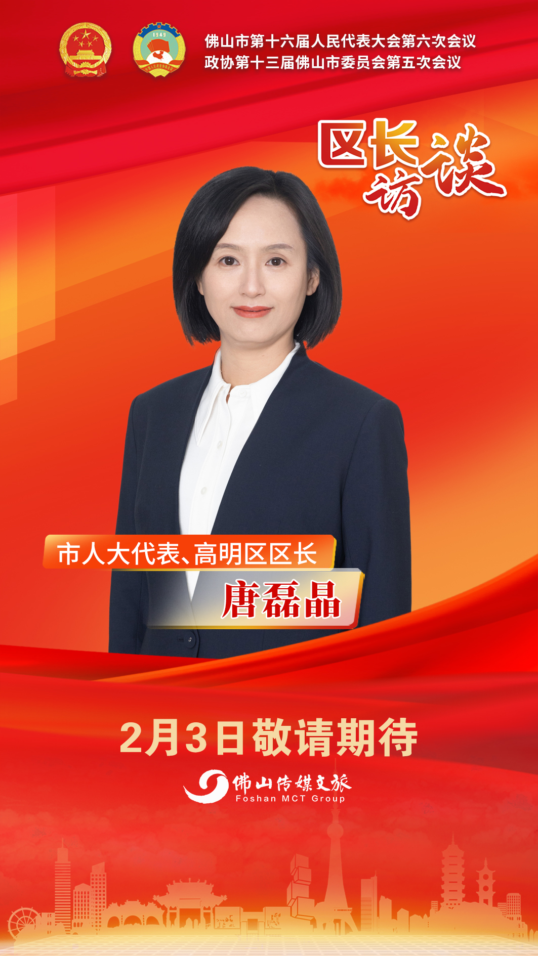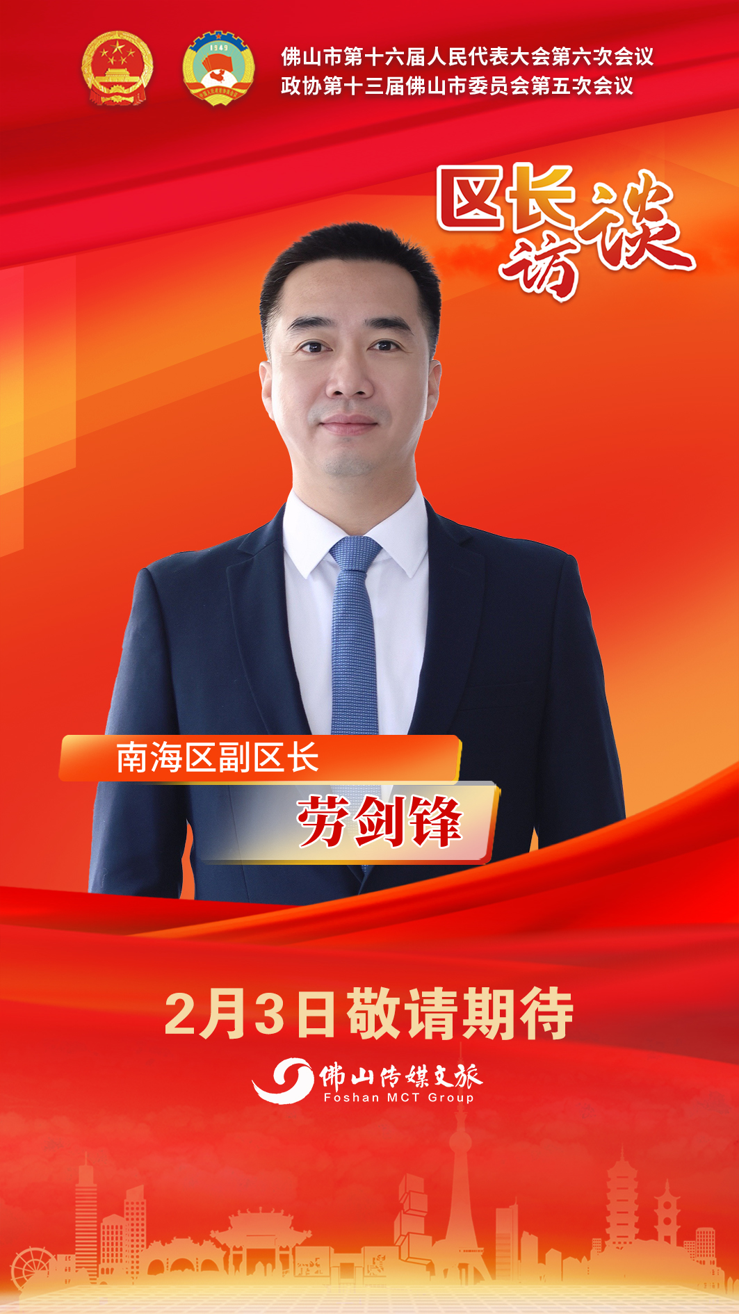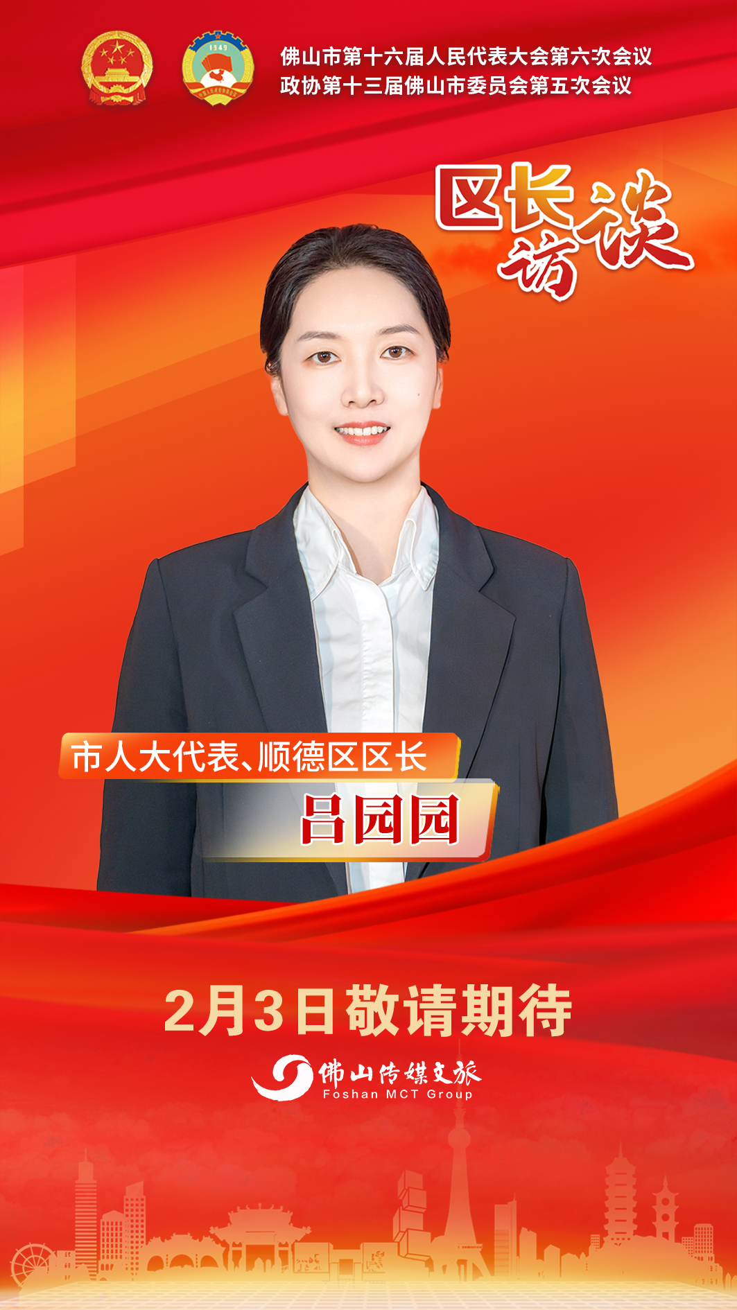 2月2日上午,佛山市第十六届人民代表大会第六次会议拉开帷幕。两会期间,佛山传媒文旅集团推出2026佛山两会区长访谈栏目,围绕市政府工作报告谈体会、感想,并结合各区发展实际,畅谈新一年发展思路和重点工作,回应社会关切。