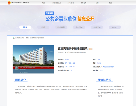 宜昌夷陵康宁精神病医院位于夷陵区鄢家河村6组。依据公开信息,该院系夷陵区卫健局主管的私立二级精神病医院。2017年完成医院主体建设并投入运营,2024年3月成为夷陵区门慢定点医疗机构,服务当地3000余名精神疾病患者。2025年9月中标夷陵区特困精神障碍患者托养服务项目,获59.5万元政府资金。医院在2021全国寻找“重质量守信用”系列走进湖北(宜昌市)投票推选中,荣获“重质量守信用优秀民营医院”第八名。