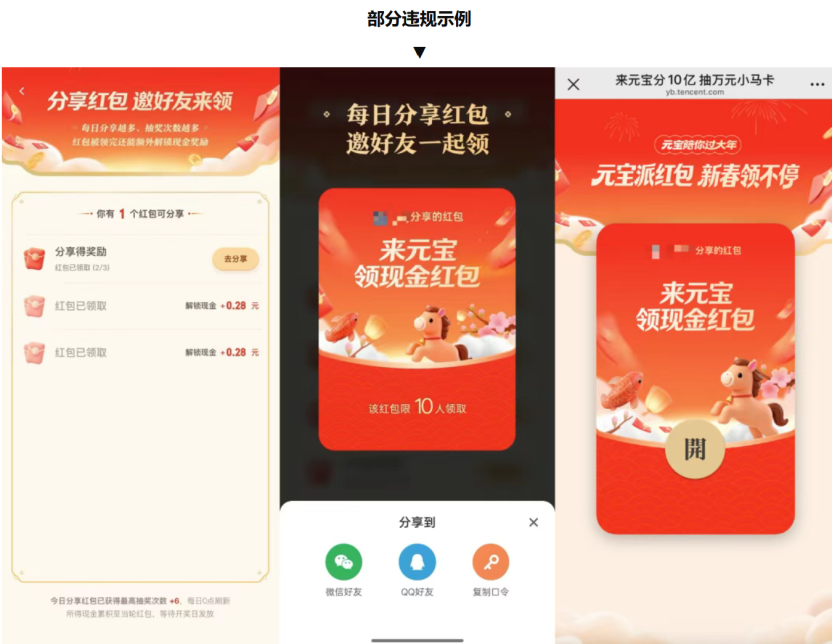 事件的导火索,是元宝在春节期间推出的 “分 10 亿” 红包活动。该活动要求用户通过分享链接到微信群来获取抽奖机会,上线仅 4 天就因高频刷屏引发大量用户投诉。微信安全中心调查后认定,元宝的 “做任务、领红包” 模式,完全符合《微信外部链接内容管理规范》中 “通过利益诱惑诱导分享” 的违规条款 —— 该条款明确禁止以金钱奖励、抽奖机会等方式,诱导用户传播外链。