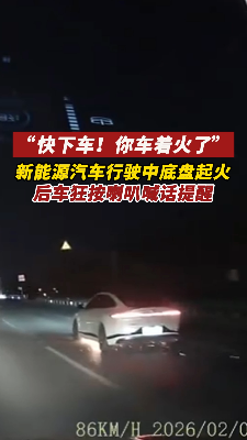 新能源汽车行驶中底盘起火,后车狂按喇叭喊话提醒