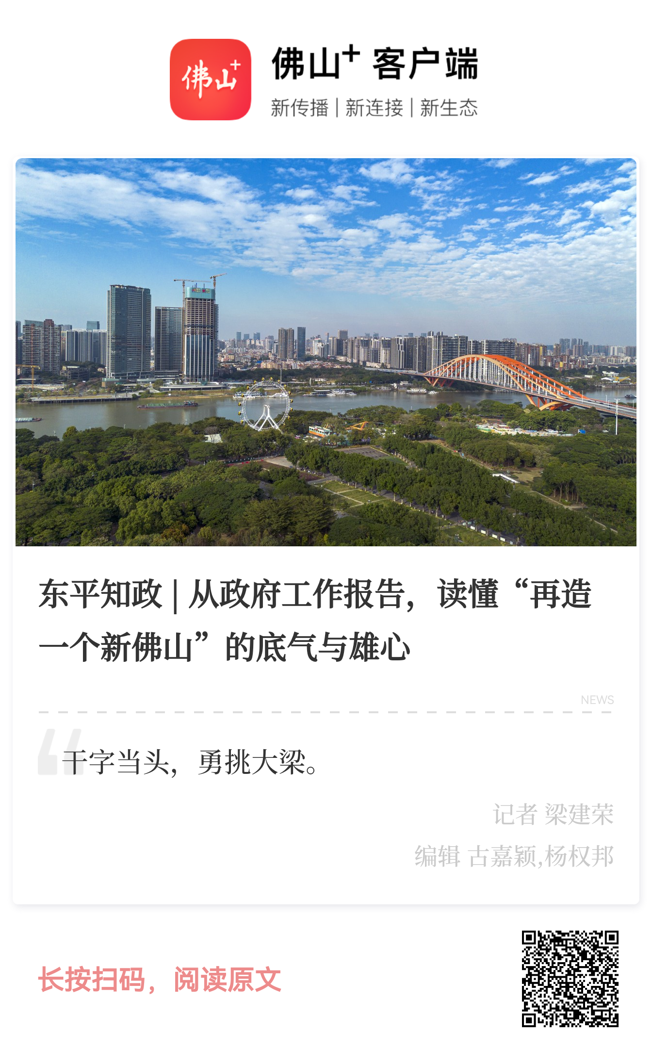 市人民政府向大会报告工作后,《东平知政》栏目持续发力,推出解读文章《从政府工作报告,读懂“再造一个新佛山”的底气与雄心》,深入剖析报告中蕴含的“三重底气”,系统梳理未来重点任务与实施路径,全面呈现佛山马不停蹄跑好“关键一程”的奋进姿态。《读懂佛山》栏目则聚焦报告最核心的关键词,以明快有力、昂扬向上的视听节奏,生动传递报告的核心精神。