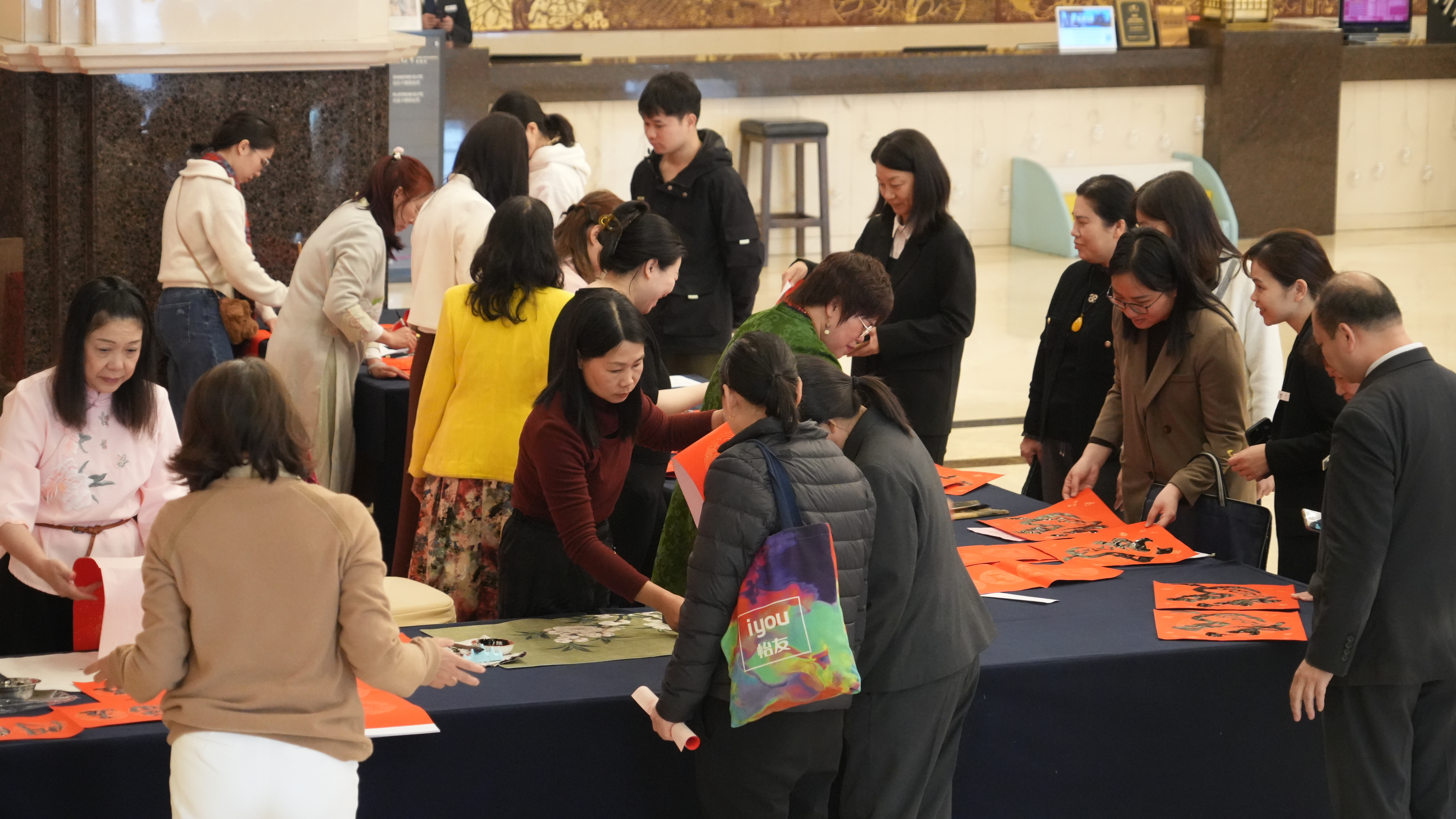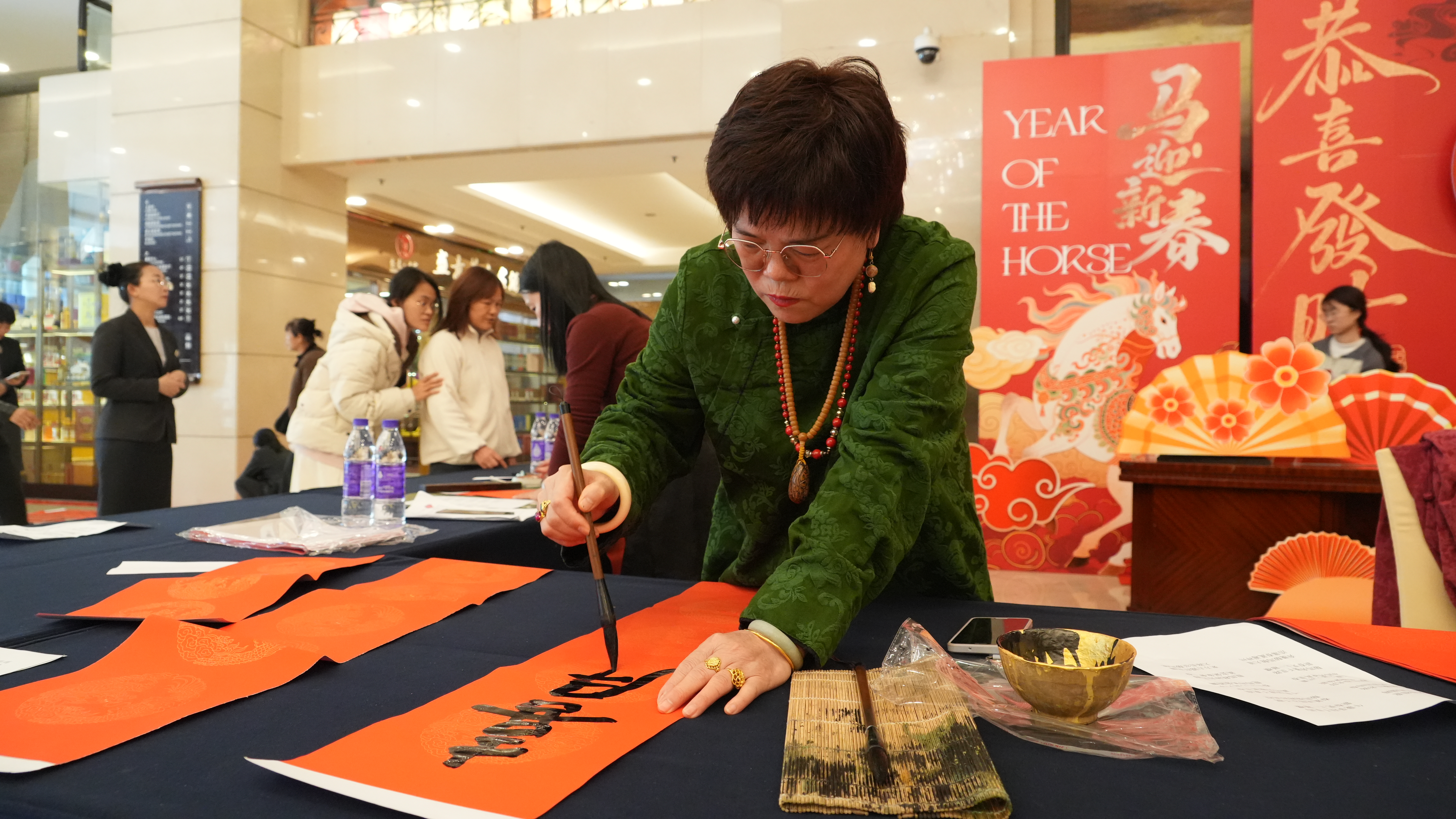 市民周女士原本是来酒店喝茶,偶然撞见这场热闹的活动,当即被深深吸引:“看到有这么一场书法活动,真的特别感动!这些老师们字写得太好了,还带着满满的创意。马上马年就要到了,我特意让她们写了几副对联,也借着这份福气,祝大家新春快乐、马年吉祥!”她手里捧着刚领到的春联,脸上满是藏不住的喜悦。