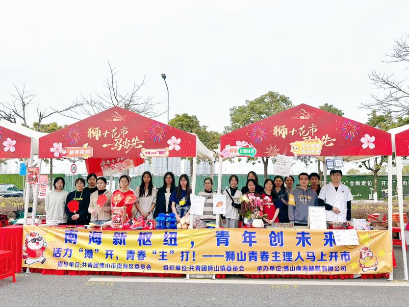 2月4日,南海狮山博爱湖灯会美食区域人声鼎沸,“南海新枢纽,青年创未来”之“活力摊开,青春主打”狮山青春主理人创意市集火热开市。来自广东工业大学、广州大学、佛山大学、华南师范大学、中国药科大学的狮山学子化身“青春主理人”,带着创意产品与本土特色好物开档迎客,在热闹的烟火气中解锁创业逻辑,也为狮山公园经济注入澎湃青春动能。