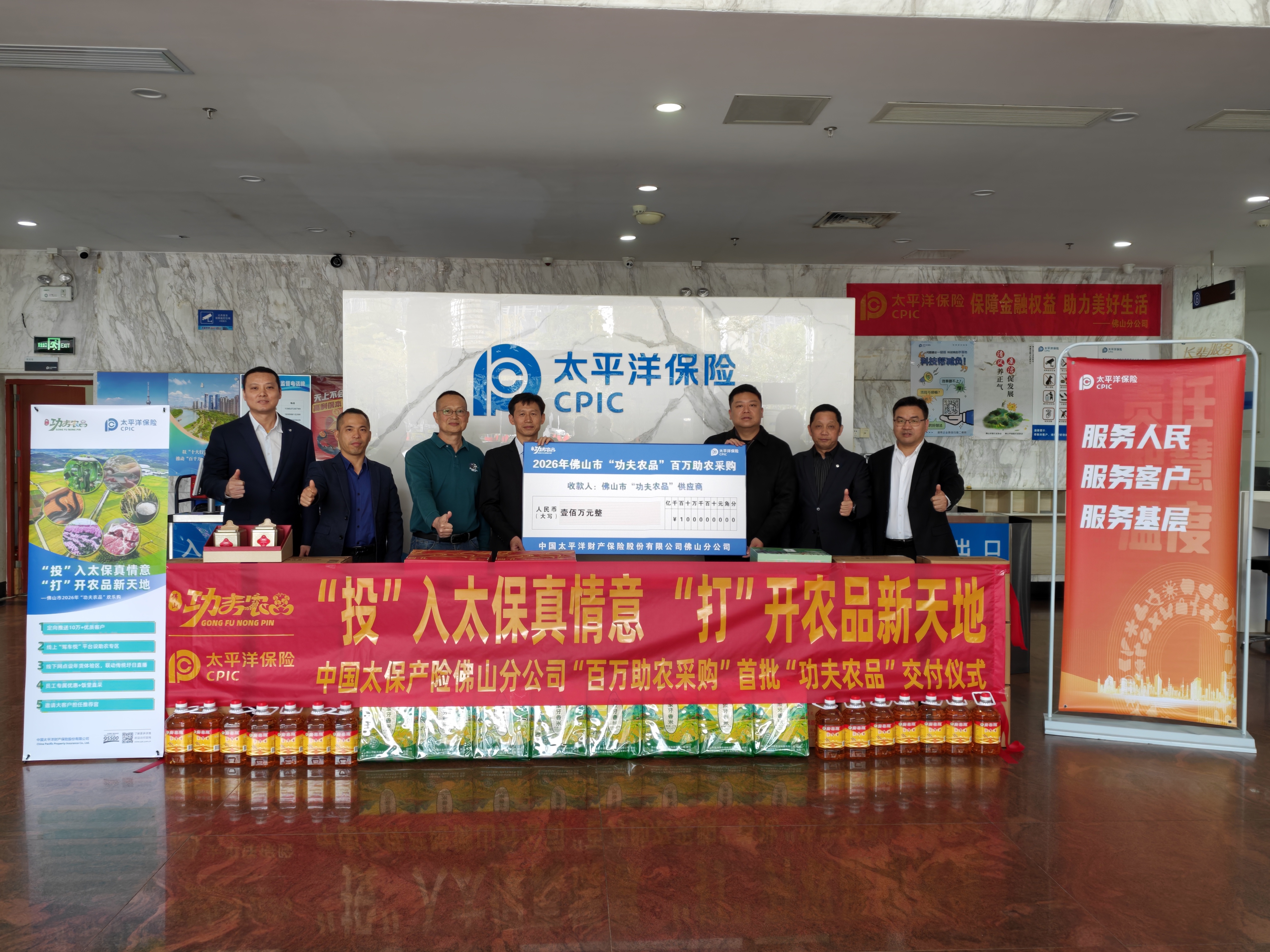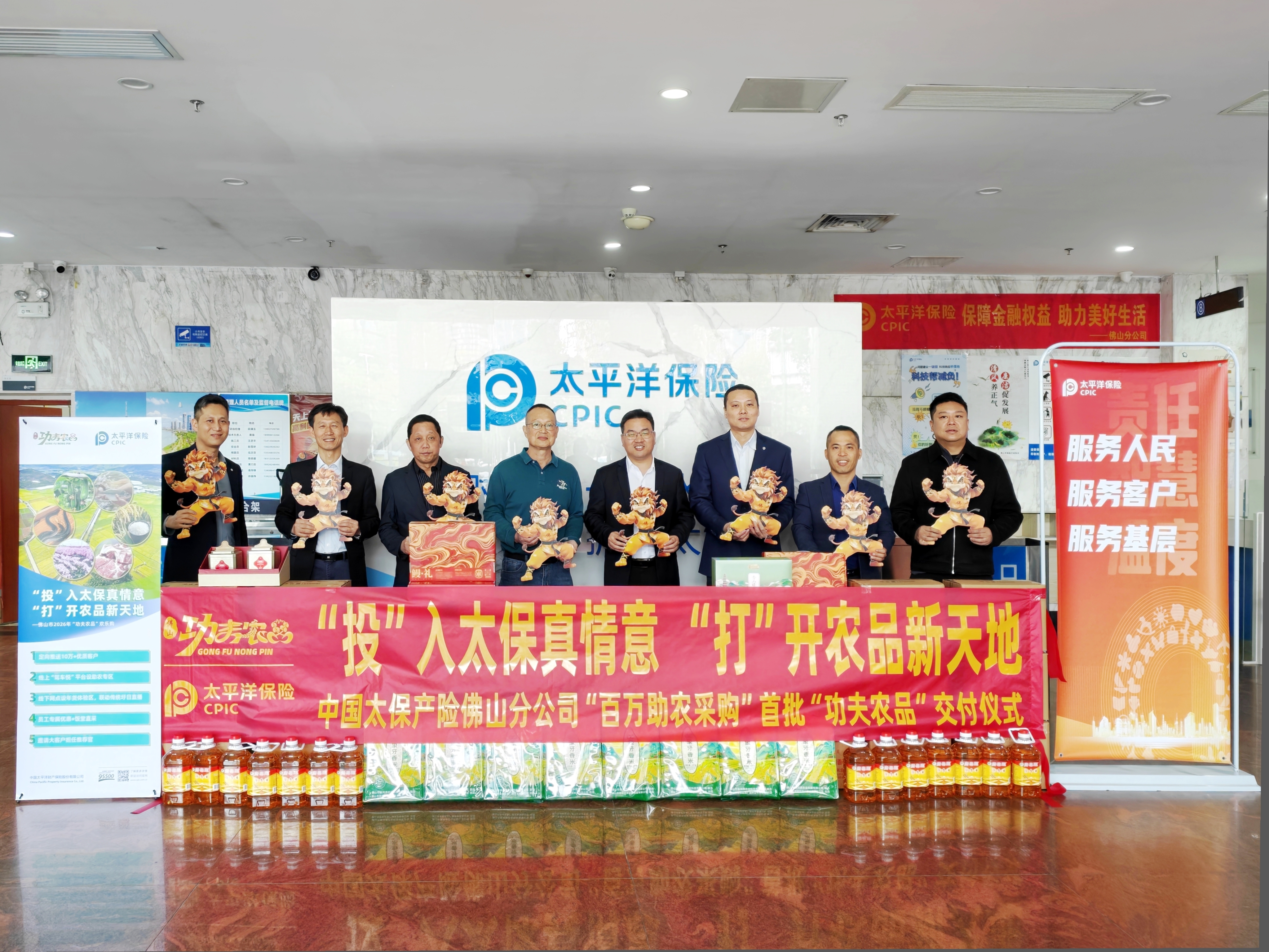 2026年2月5日,中国太保产险佛山分公司举行“百万助农采购”行动首批“功夫农品”交付仪式,标志着该公司在助力乡村振兴、推动区域优质农产品品牌化方面迈出实质性步伐。佛山市农业农村局、顺德区水产商会和一批“功夫农品”供应商代表出席了交付仪式。
