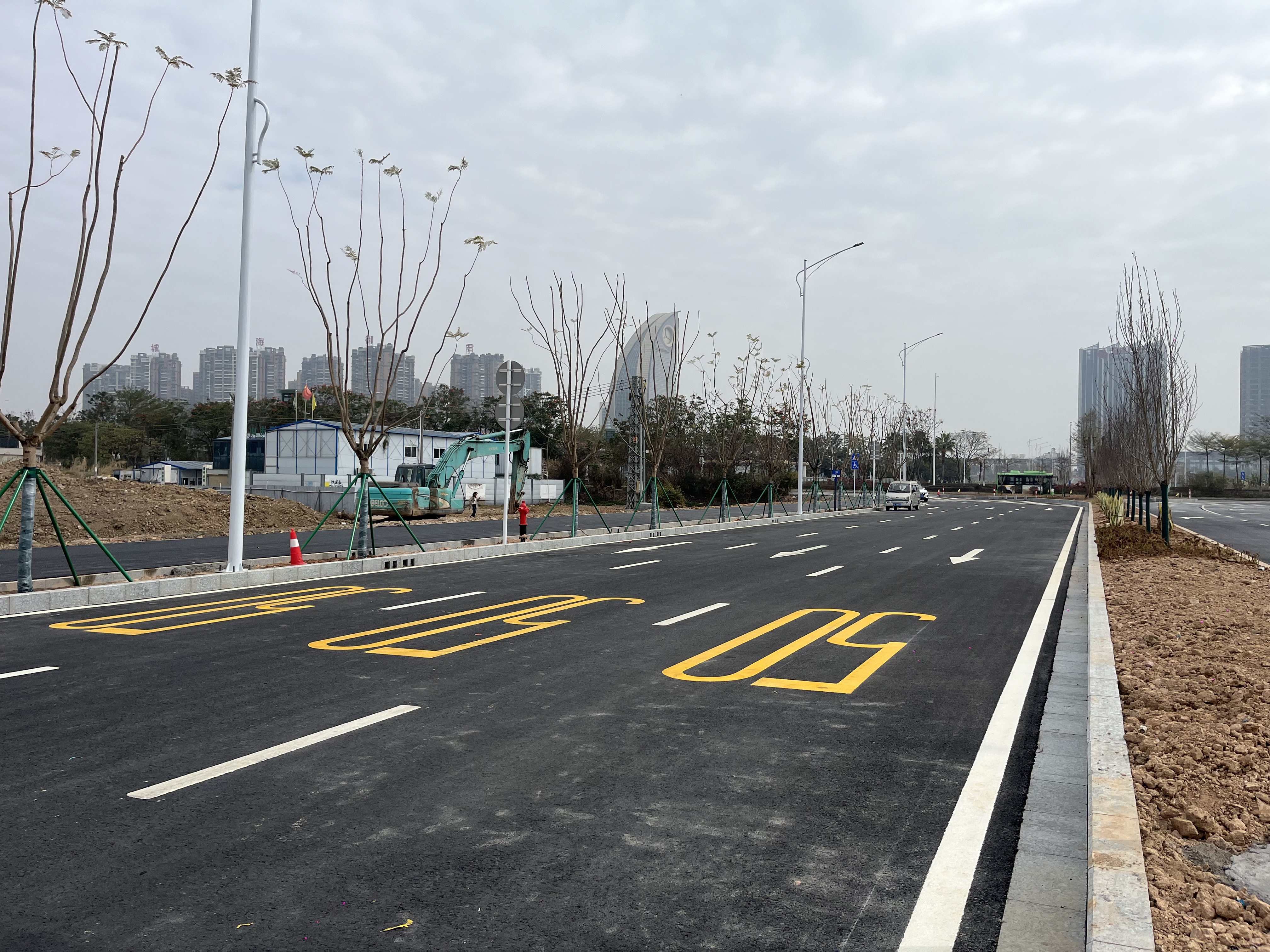 现场可见,主车道绿化、交安及照明设施、人行道饰面等配套工程全部完成,道路整体形象和通行条件显著提升。