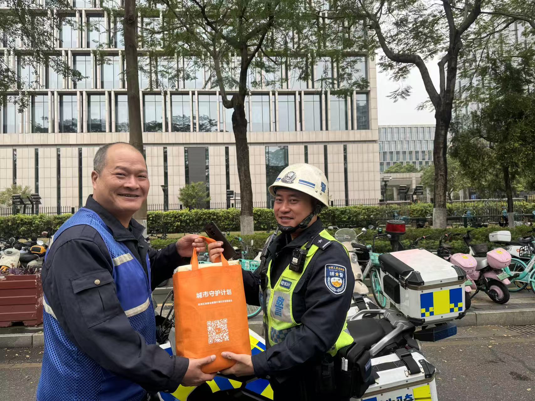 为延续关爱实效,今年“城市守护计划”继续采用“定点派发+流动送达”相结合的方式,有序铺开温暖行动。在定点派发方面,社区党委联合南海区人力资源和社会保障局党员志愿者,前往辖区内4个物业小区及三宁物业进行集中派送;此外,多支志愿队伍——包括社区驻点团队、党员志愿者、楼长、团员志愿者、社区工联会志愿者、专职基础网格员、社团志愿者及企业志愿者等,走上街头、深入社区,前往周边华南国际金融中心、保利天际、友邦金融中心、保利水城等多个楼宇及商圈、公交站点及街巷,为保安、保洁、公交司机、快递小哥、外卖骑手等流动岗位人员送上暖心福袋。接过福袋时,每一位城市守护者的脸上都洋溢着幸福的笑容。