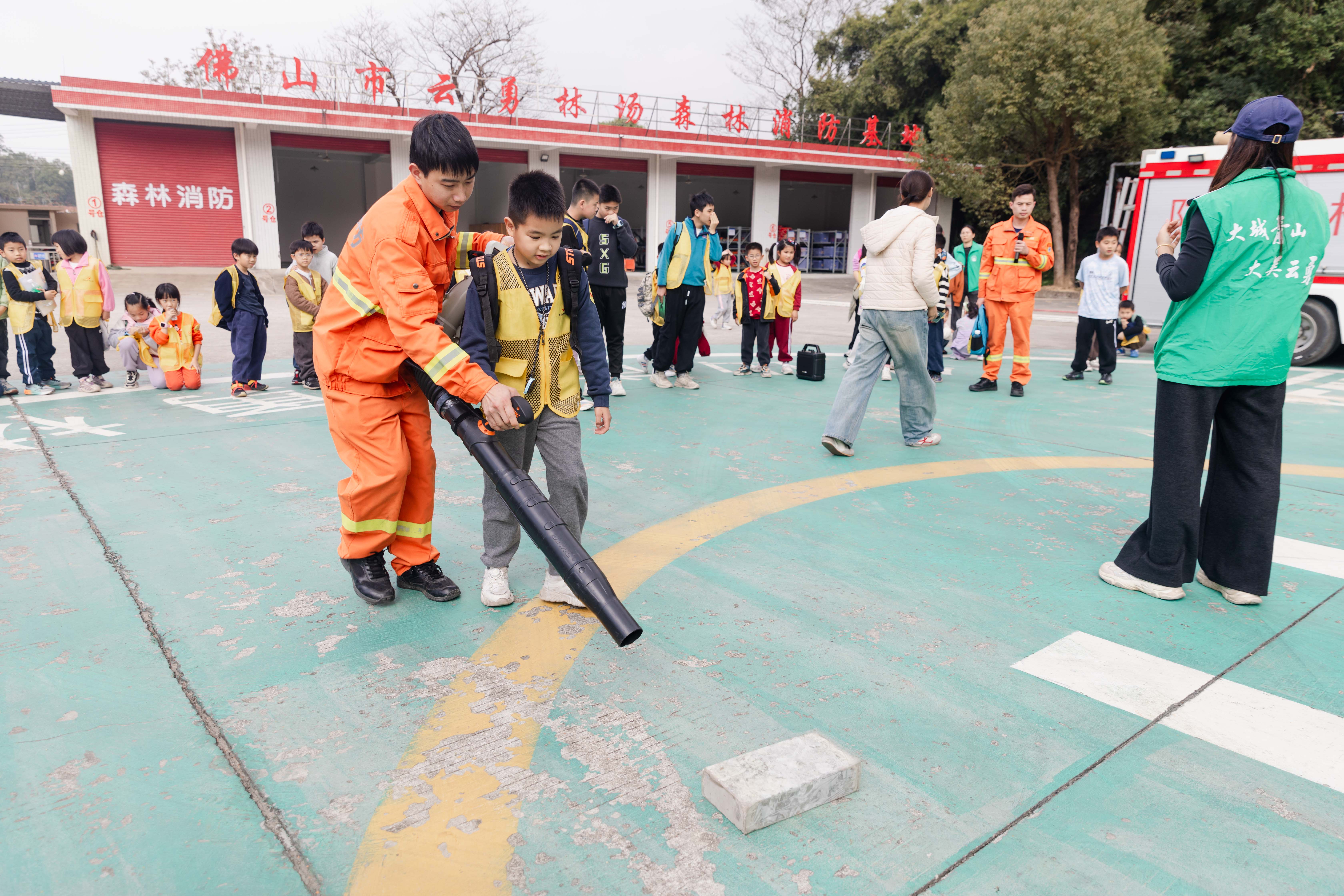 森林防火是生态保护的重要一课,学员们化身 “小小护林员”,走进消防救援站,开启消防知识学习之旅。“这卷水带展开有 20 米长,能连接消防栓供水,水枪不仅能喷水柱,还能喷开花水。” 消防员的细致讲解让他们大开眼界,大家轮流上前触摸消防装备器材,现场观看水枪出水演示,腾空的水柱引得他们阵阵欢呼。学员吴嘉浚收获颇丰:“今天见到了会学话的鹦鹉、猴子等国家珍稀动物,特别是在消防站见识到了消防设备的强大,比如喷气装置最大风力可达12级,消防车的水能喷到约10层楼的高度。”