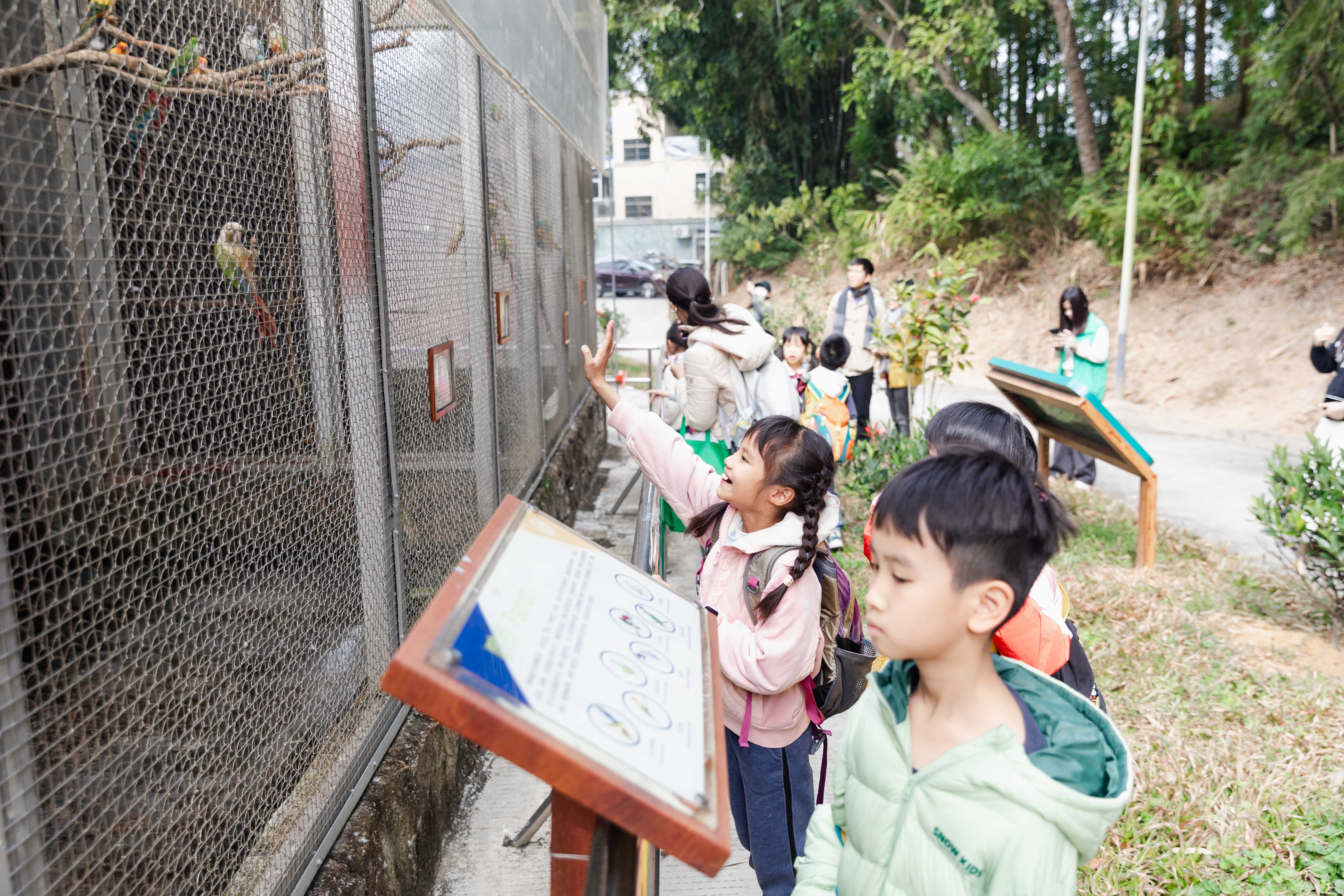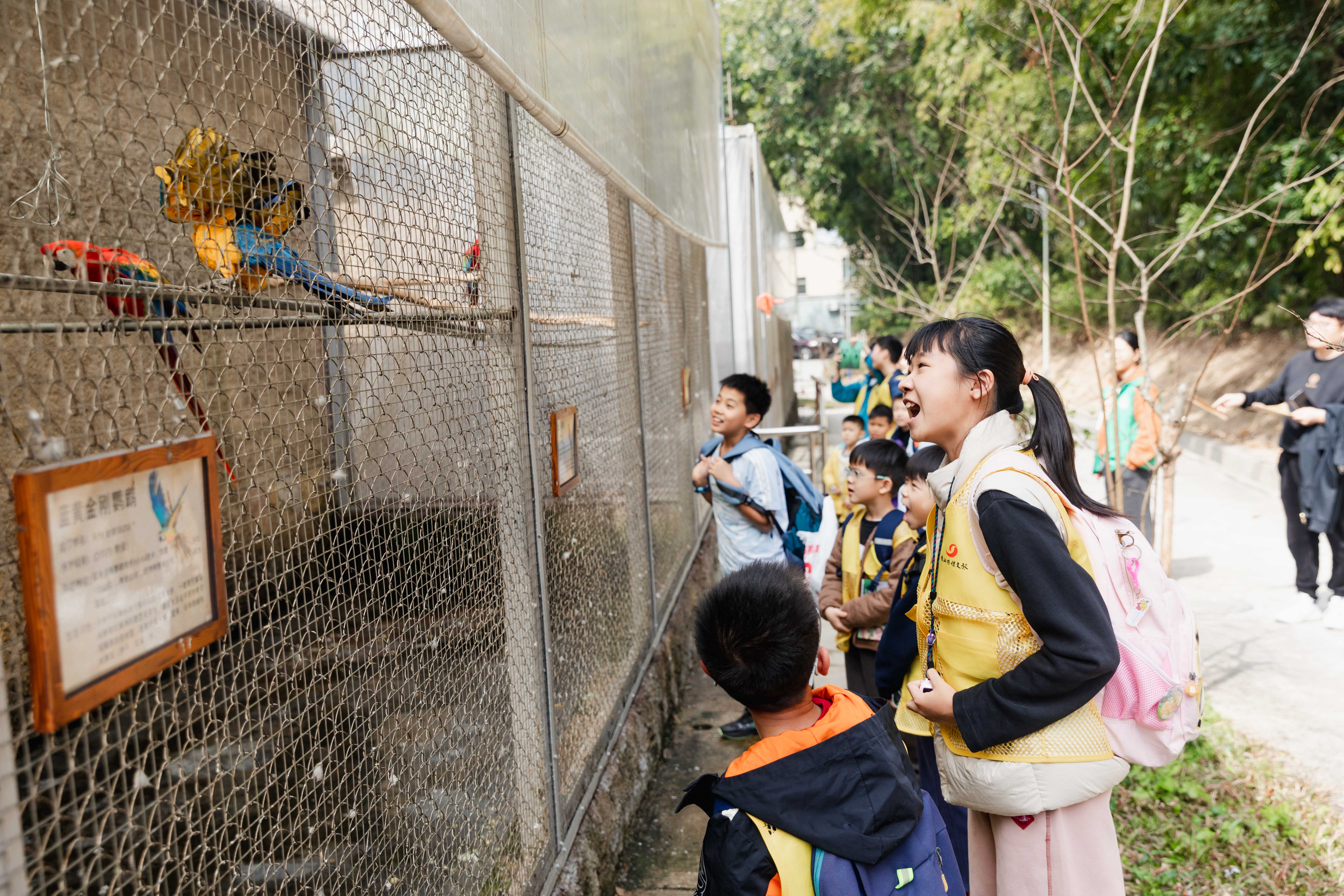 抵达云勇林场佛山市野生动物救护中心,学员们的好奇心瞬间被点燃,在云勇林场老师的带领下,大家近距离参观了各类野生动物:叽叽喳喳的鹦鹉、憨态可掬的龟类、活泼好动的猴子、身姿华美的孔雀,还有静静栖息的蛇类与蜥蜴。被动物吸引的学员们有人低头在笔记本上认真记录着动物的习性,有人举着手机、电话手表,迫不及待地和家人分享这份惊喜。