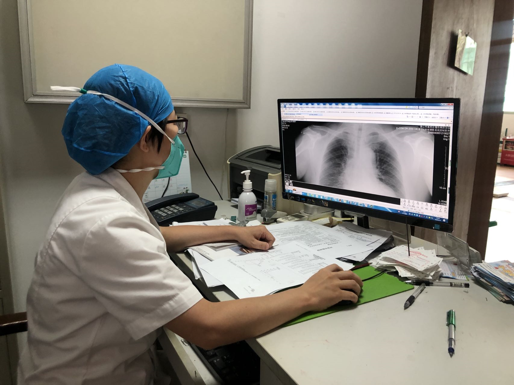 高明区慢性病防治站呼吸内科主任戴磊正在查看一患者的胸片。高明融媒记者陈嘉懿摄