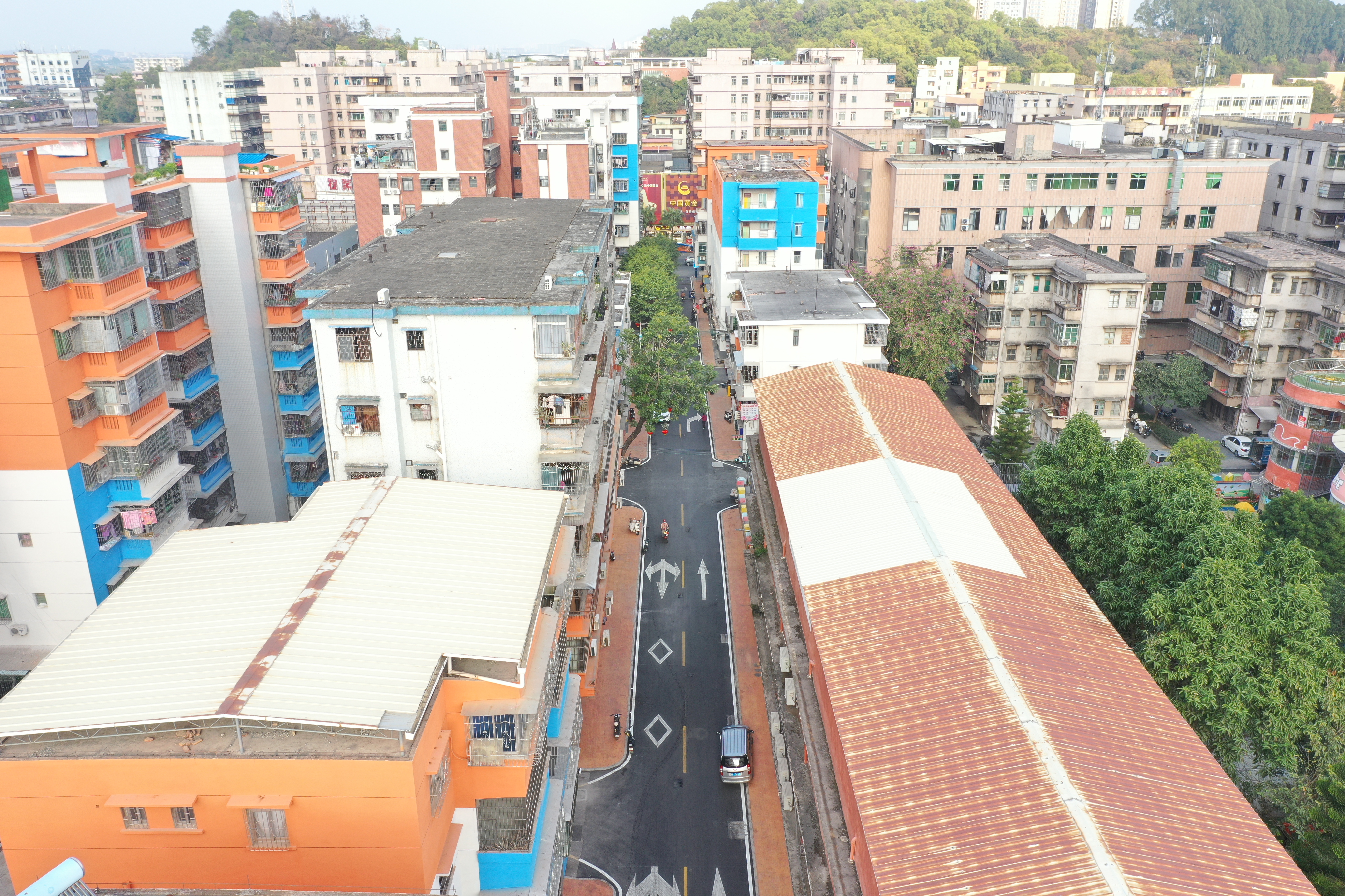 高明区住房城乡建设和水务局副局长陆秋连回应说,岭南社区改造于去年10月正式进场施工,项目包括建筑立面改造、甘泉街和梅花街道路及人行道改造、三线改造、口袋公园建设等,目前已完成总体工程进度的80%以上。