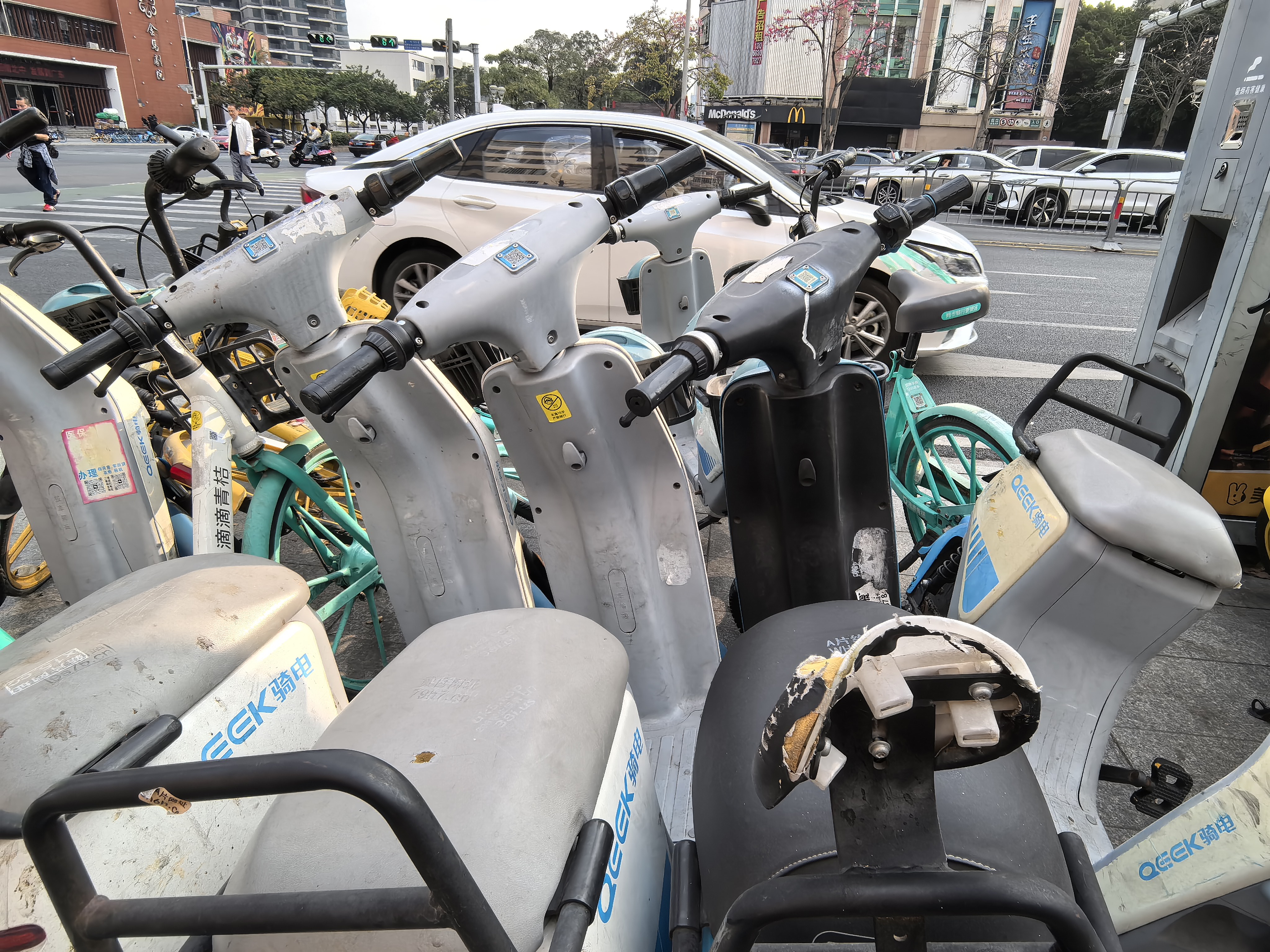 连日以来,小强热线记者收集市民骑行共享电动车过程中普遍问题、槽点,在禅城、南海、顺德等多地实地调查,通过用户群体反馈、实测体验和持续深入走访发现,共享电动自行车“重投放、轻管理”问题突出。市民常遭遇还车难,骑行体验大打折扣。 不仅用车体验不佳,车辆管养也明显缺位。车辆扎堆停放、挤占人行道与公交站,破损车辆长期无人清理。而当用户遇到问题寻求帮助时,客服热线往往难以接通,未能有效解决问题。