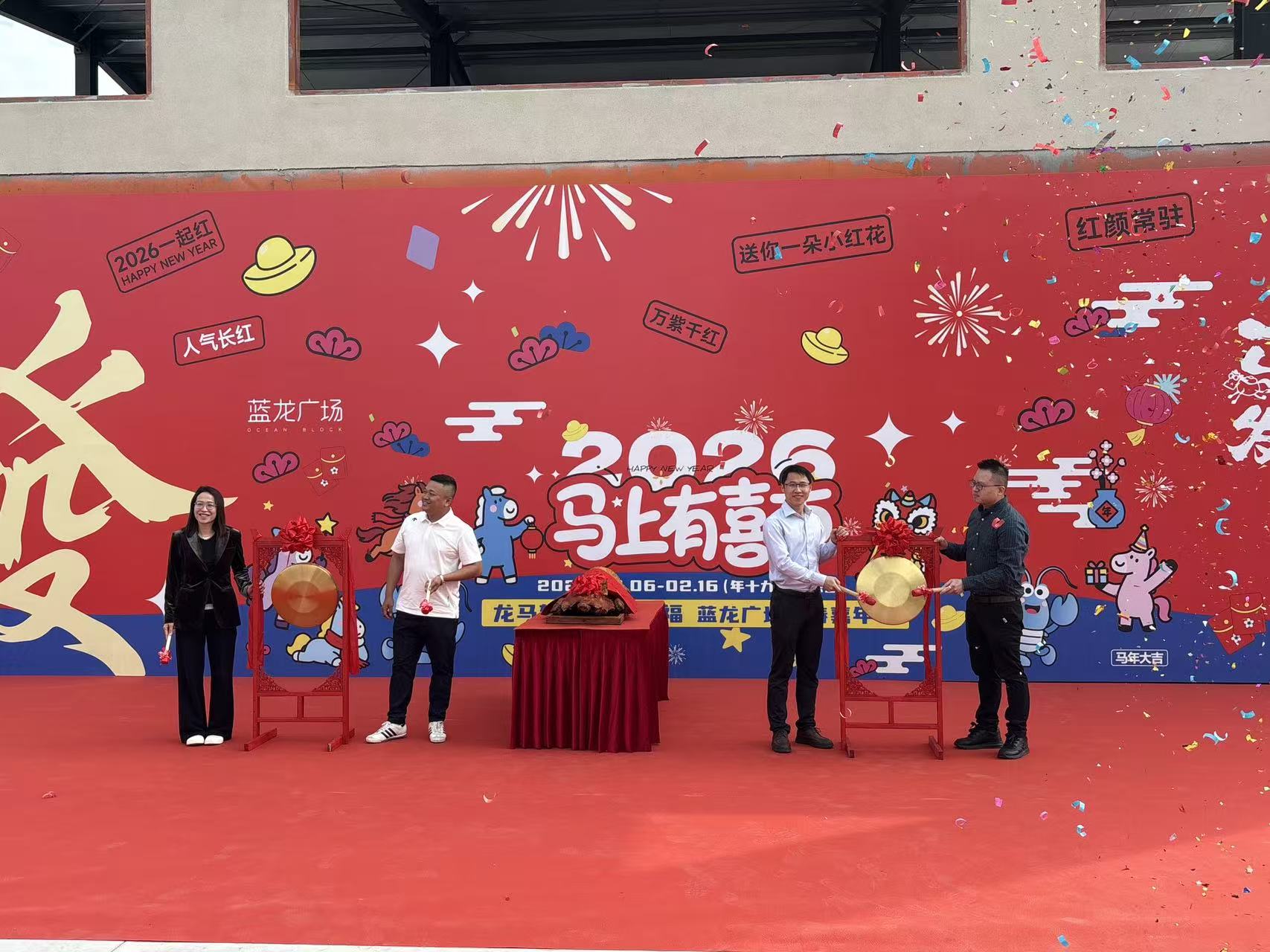 年关将至,新春在望。2月6日上午,位于西江新城中柚线的蓝龙广场人潮涌动、热闹非凡。锣声响起,“龙马贺春,名品聚福”——蓝龙广场新春嘉年华正式拉开帷幕。本次活动以“马上有喜市”为主题,整合餐饮、文创、家居、年货及本土农产品等丰富业态,打造一站式新春消费体验空间,让市民在家门口即可“办年货、品年味”。
