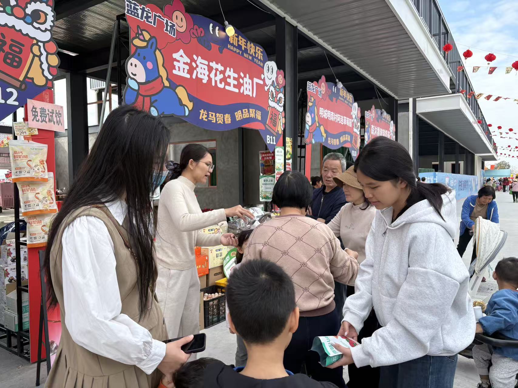 蓝龙广场总经理李建飞表示,嘉年华不仅为商家提供了展销平台,也为年轻人创造了社会实践机会,更让市民得以就近参与年节活动、采购心仪年货。“从今天起到除夕,节目不停、欢乐不断,欢迎市民朋友常来逛逛。”