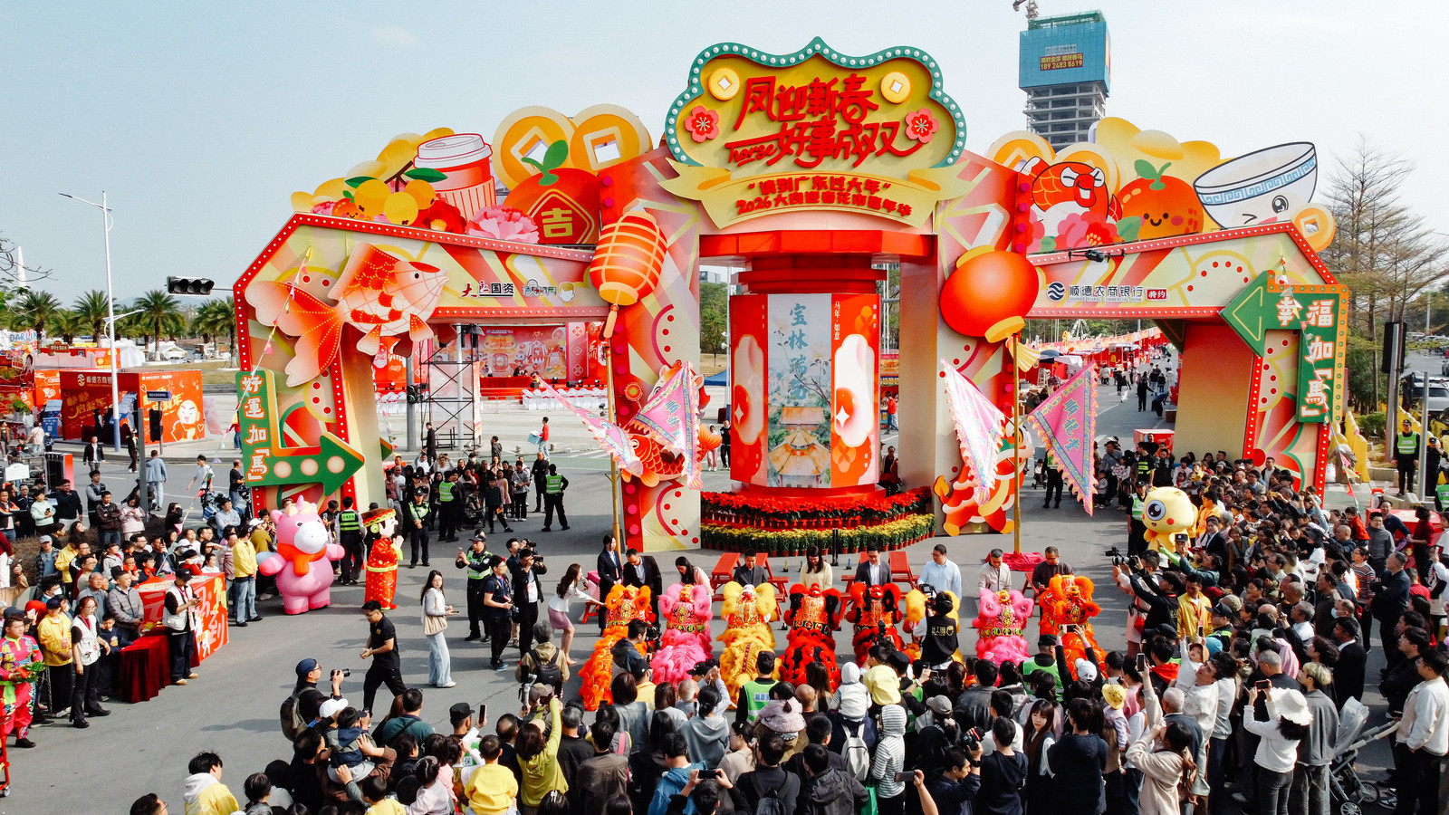 当天10时活动拉开序幕。活动现场,精神饱满的雄狮为花市带来精彩的表演、氛围感拉满;领导嘉宾手持金笔为祥狮点睛,寄寓马年福星高照、万事顺遂;群狮欢舞腾跃,身姿矫健灵动,既彰显勇于攀登的顺德精神,也将新春喜气传递至每个角落;采青接青环节寓意瑞气临门、生财有道,祥狮吐旗宣告花市正式启市,全场掌声雷动,福气氛围拉满。