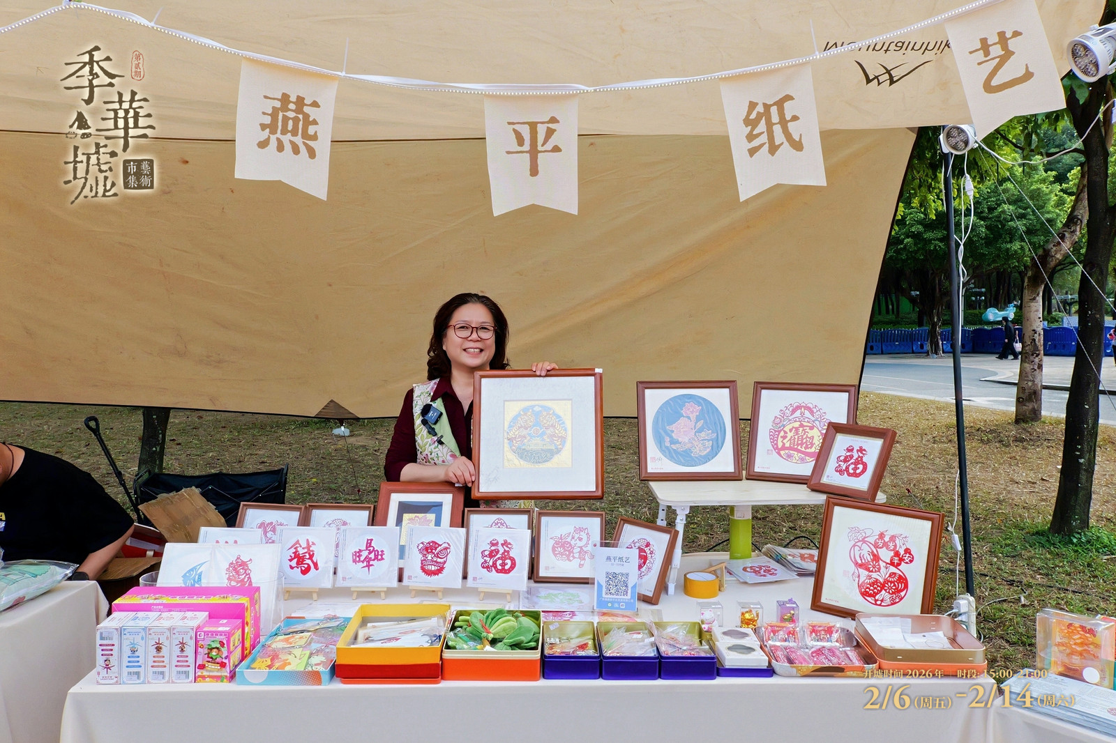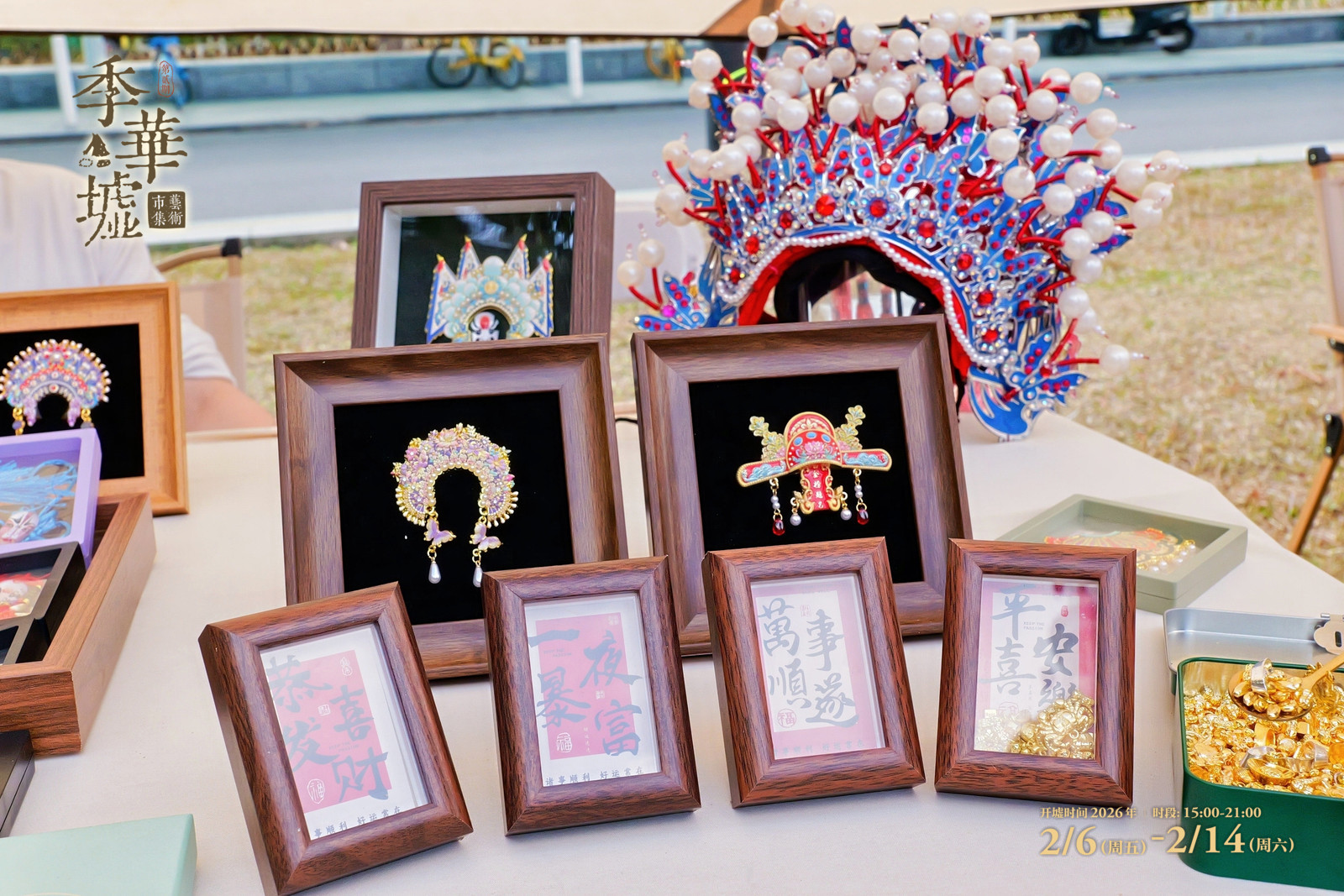 非遗新生、创意手作、美学茶咖……四十余个特色摊位在季华墟二期整齐铺展。