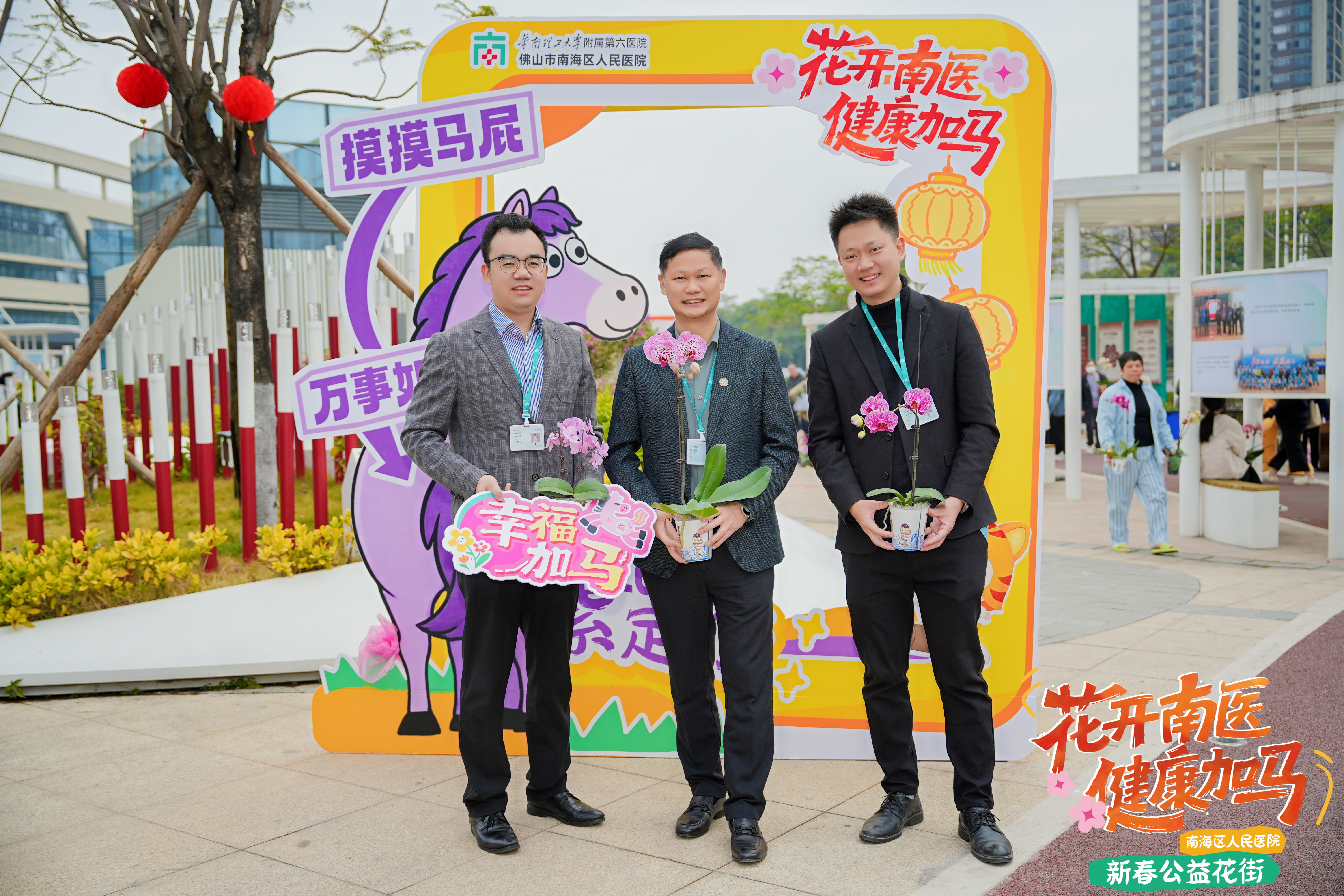 新春将至,年味渐浓。2月11日,南海区人民医院打破传统新春布置模式,在医学人文主题公园、门诊楼二楼大堂举办“花开南医·健康加马”新春公益花街活动,以花香传温情,以健康送祝福。