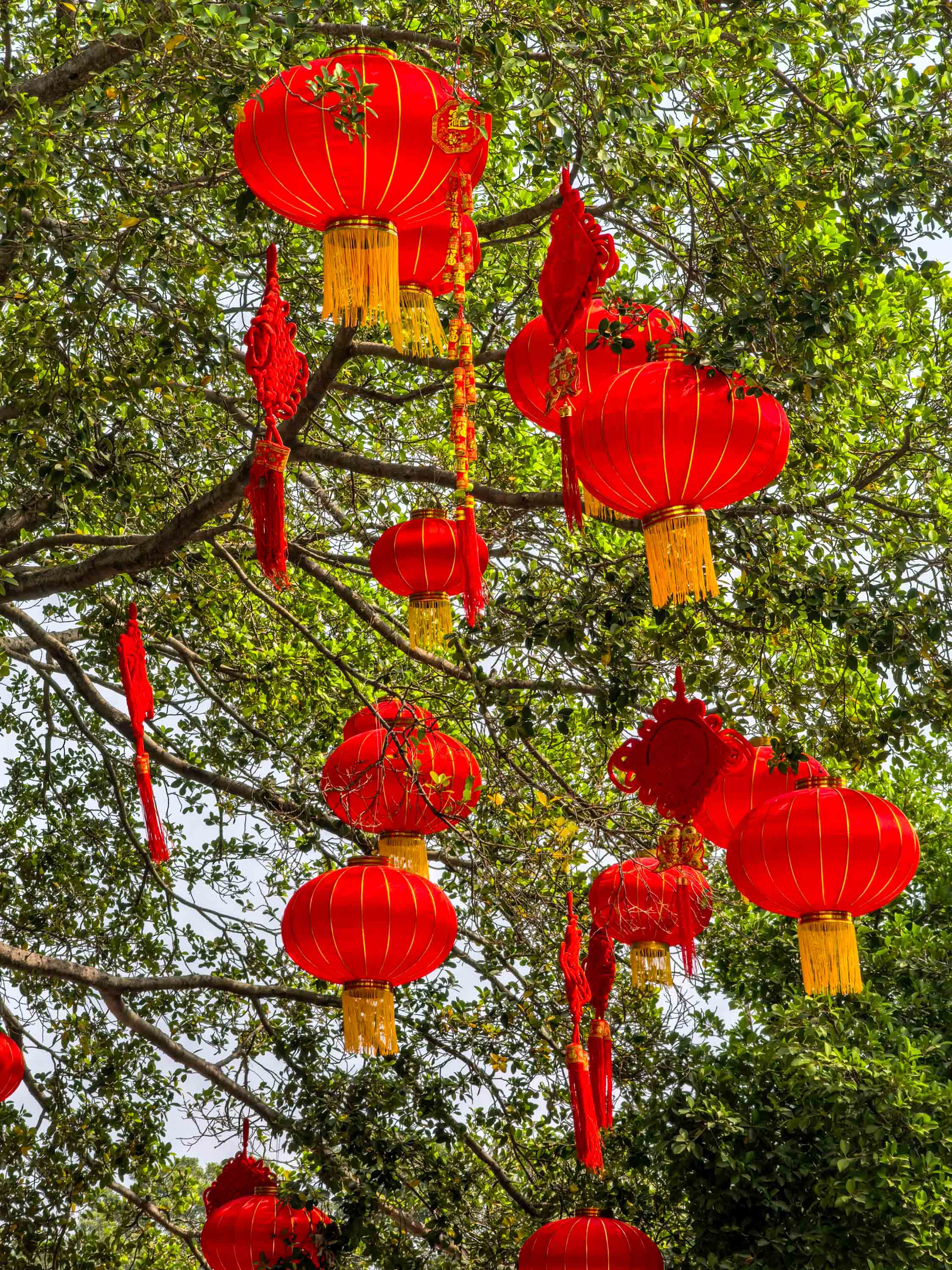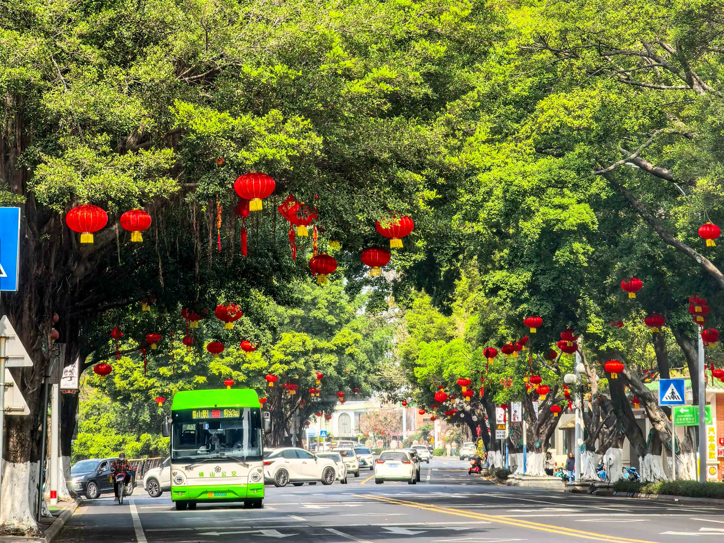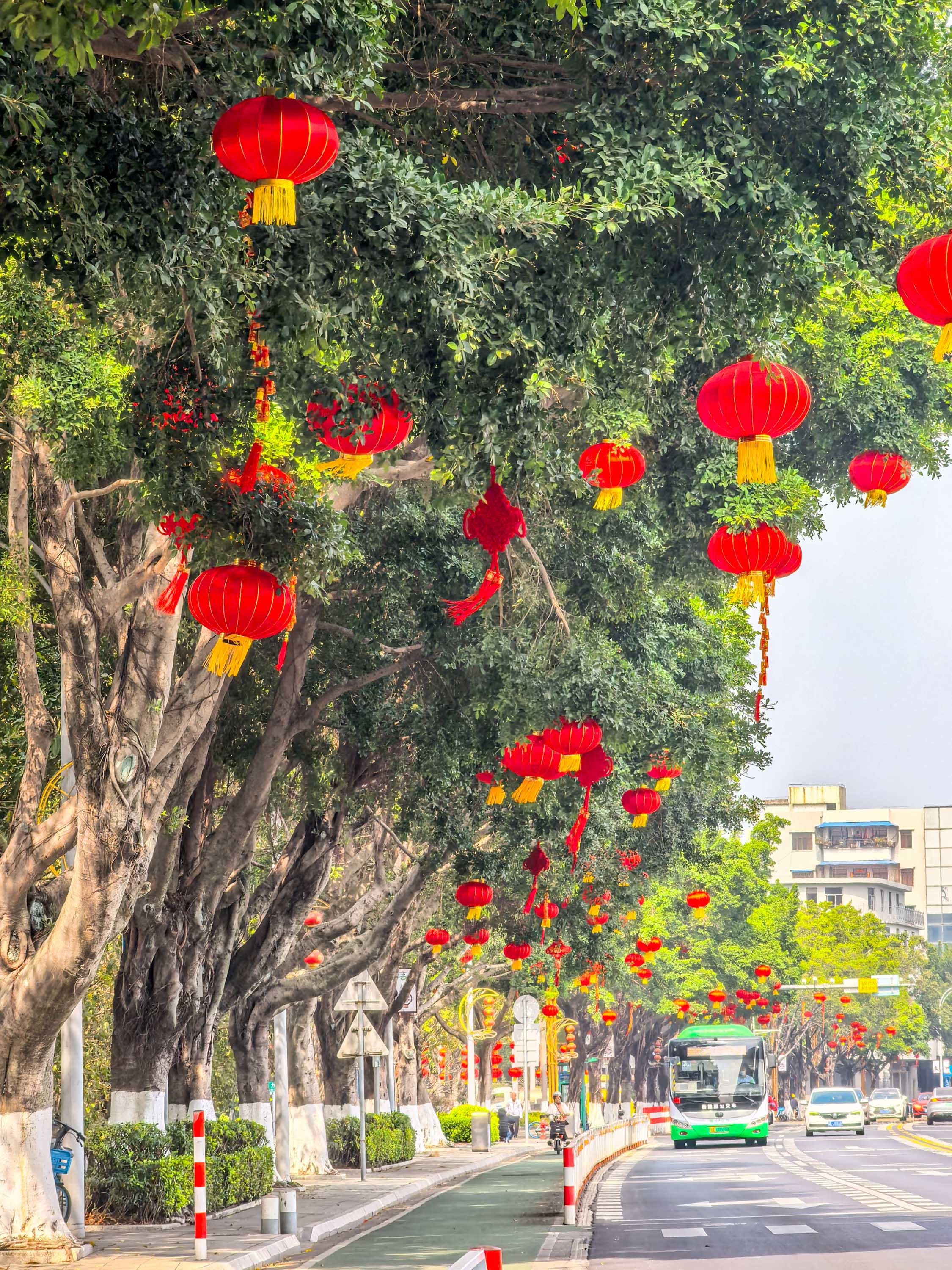 高明的街道上已充满喜庆氛围。在沿江路,茂密的榕树枝头上,挂着一个个喜庆的大红灯笼,年味瞬间拉满。