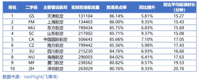 天津航空成年度最准点的航空公司 山东航空准点率提升最快