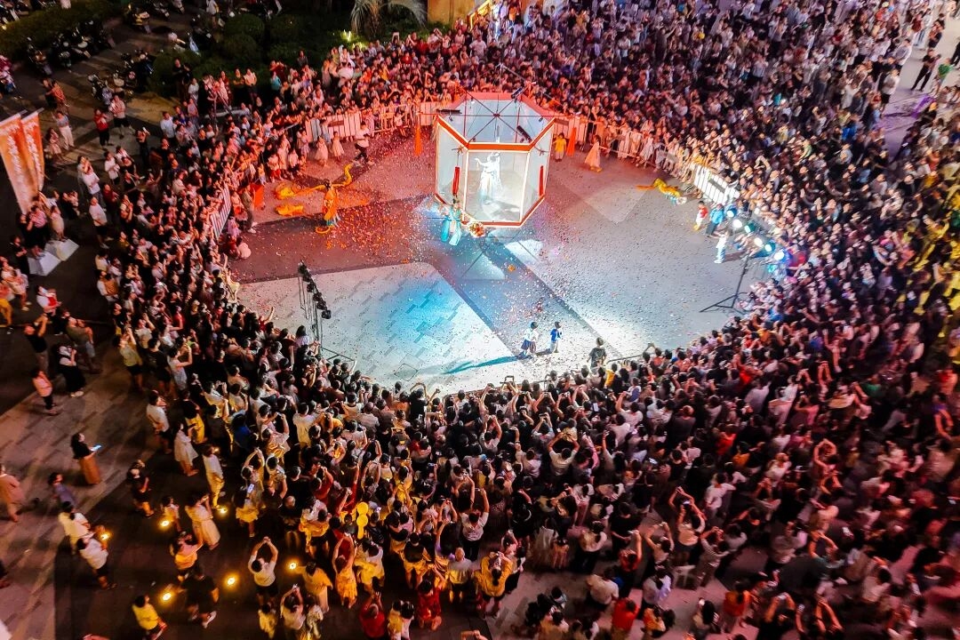 除夕(2月16日)当日,逛完花市的市民可直奔跨年夜场,赴一场蘇村国潮音乐节之约,当劲爆电音遇上婉转戏曲,当悠扬古筝遇上激昂贝斯,知名乐队携手国风歌手同台演绎,在传统韵味与潮流节奏的融合与碰撞中嗨翻跨年夜,一起伴着歌声行大运、迎新春。