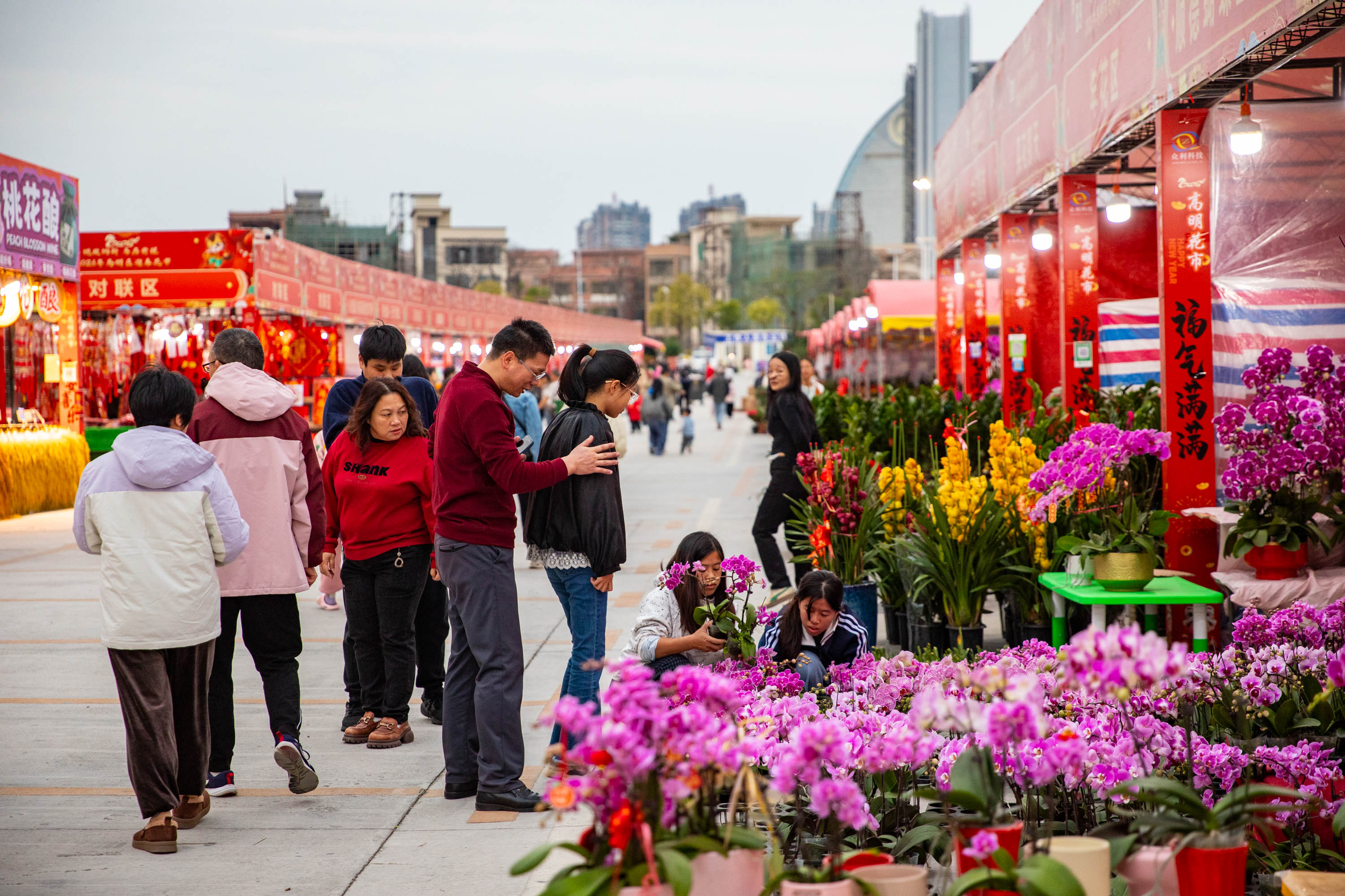 随着新春佳节的脚步日益临近,高明迎春花市人气持续攀升,人流络绎不绝。不少市民带着一家老小前往花市打卡游玩购物,在繁花似锦、年味浓郁的氛围中感受新春气息。摊位上年花争奇斗艳、芳香四溢,选购年宵花卉、置办年货年货的市民往来不断,大家精挑细选、满载而归,脸上洋溢着喜迎新春的喜悦。