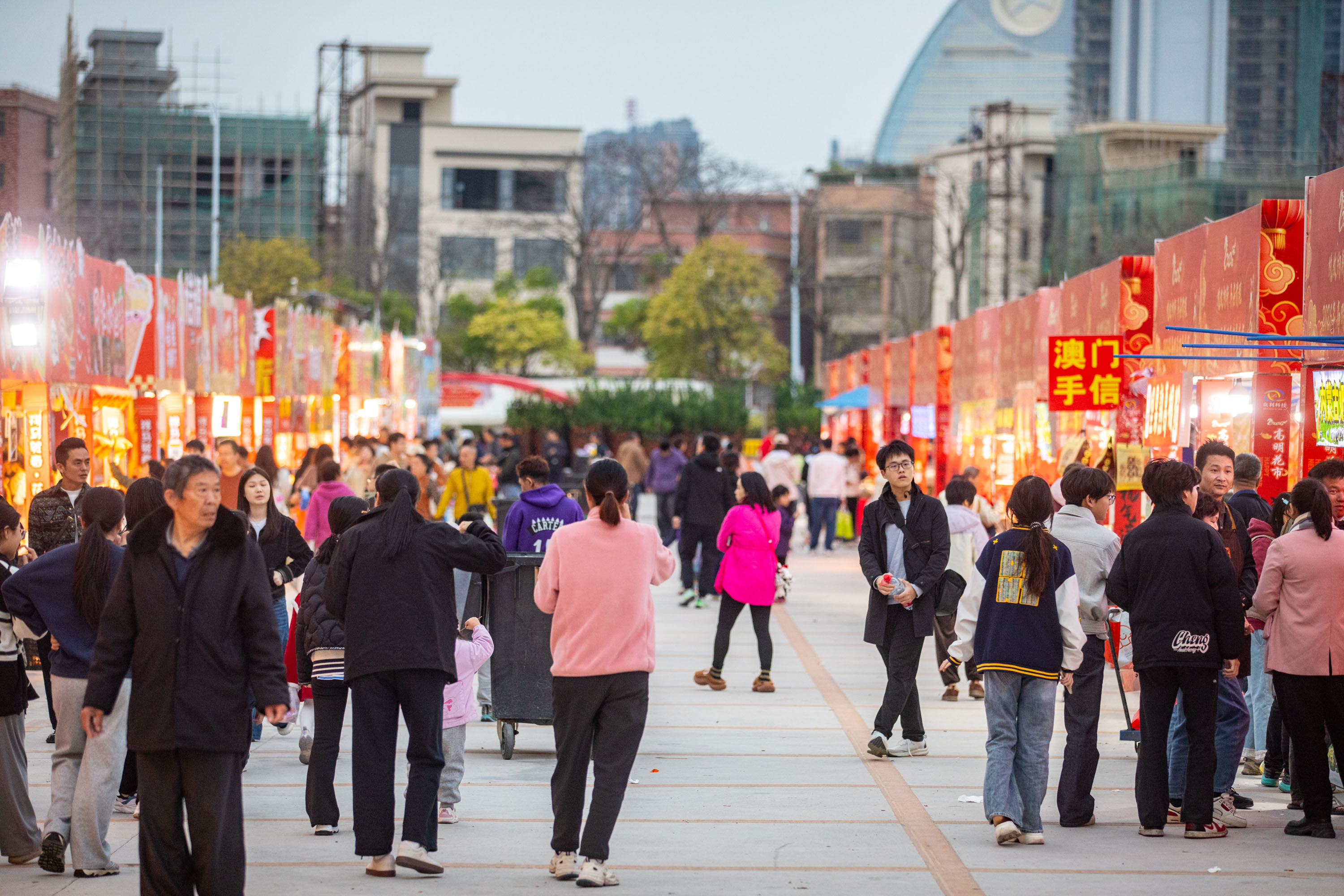 套圈圈、射气球、吊小鸡、拉拉乐……趣味小游戏摊前挤满亲子家庭,孩子们专注投入,套中心仪的玩偶、小礼品时欢呼雀跃,笑声不断。“花市这边的年味是最浓的,今天特意带孩子一起来体验一下花市的氛围!”游戏摊位前,陈晓华与孩子一同做游戏,享受假期亲子共度的美好时光。