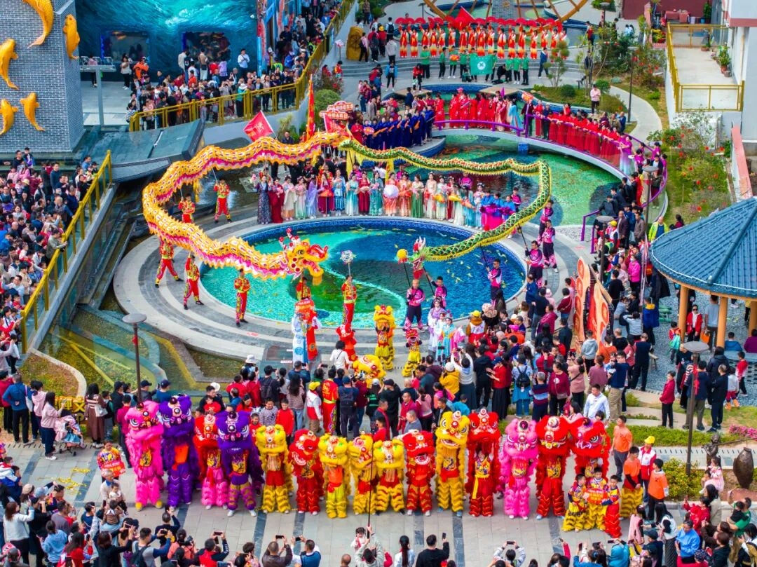 每晚19:30~21:30,在福马财神打卡区,穿着财神、萌马吉祥物服饰的演艺人员现场送福,与市民游客做游戏,好礼送不停。2月13、14日晚上,在高明苏村鱼尾龙广场大学生创业区前,还有人造飘雪活动,特制设备喷涌出细密洁白的人造雪花,飘落在9.912米高“鱼尾龙”花岗岩雕塑上,特别在夜里,广场上灯光璀璨,锦鲤腾空、金鳞化龙……现场如梦似幻,人造飘雪的浪漫与街区复古氛围、灵动雕塑等融合,带来别样的夜间游赏体验。