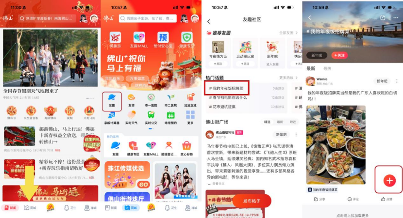 即日起,在佛山+客户端带话题 #我的年夜饭招牌菜 发帖,晒出你家的“镇桌大菜”!无论是传承多年的经典年菜,还是为马年特别研制的新春创意,我们都坐等围观你家的团圆滋味!