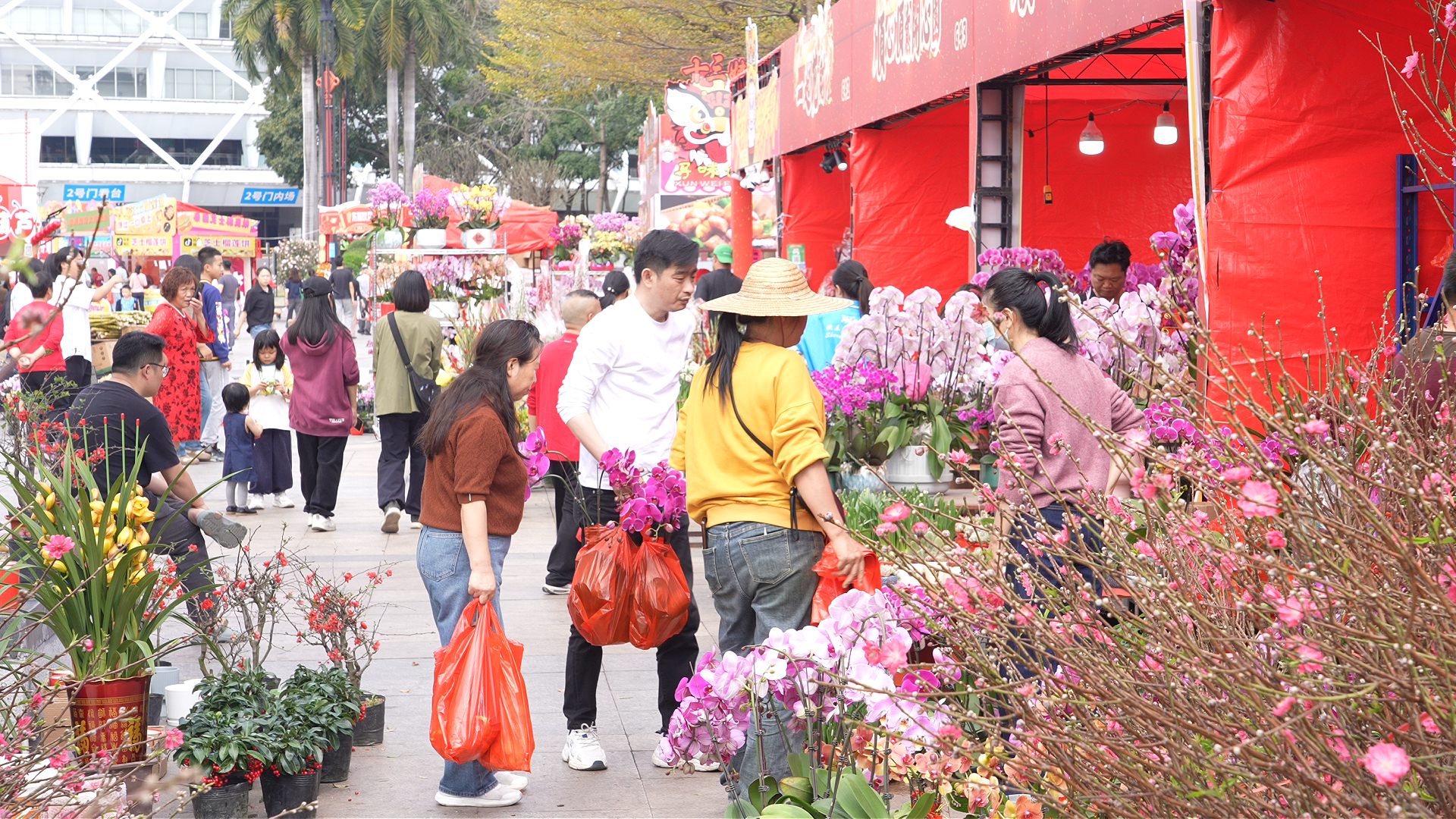 14:09,禅城文华迎春花市迎来最后半天。不少市民趁着最后时间赶来扫货,档主们也纷纷推出优惠,现场人气依然火爆。有档主介绍,今年整体销售情况平稳,与往年基本持平。市民们抱着年桔、蝴蝶兰满载而归,在花香中迎接新春。