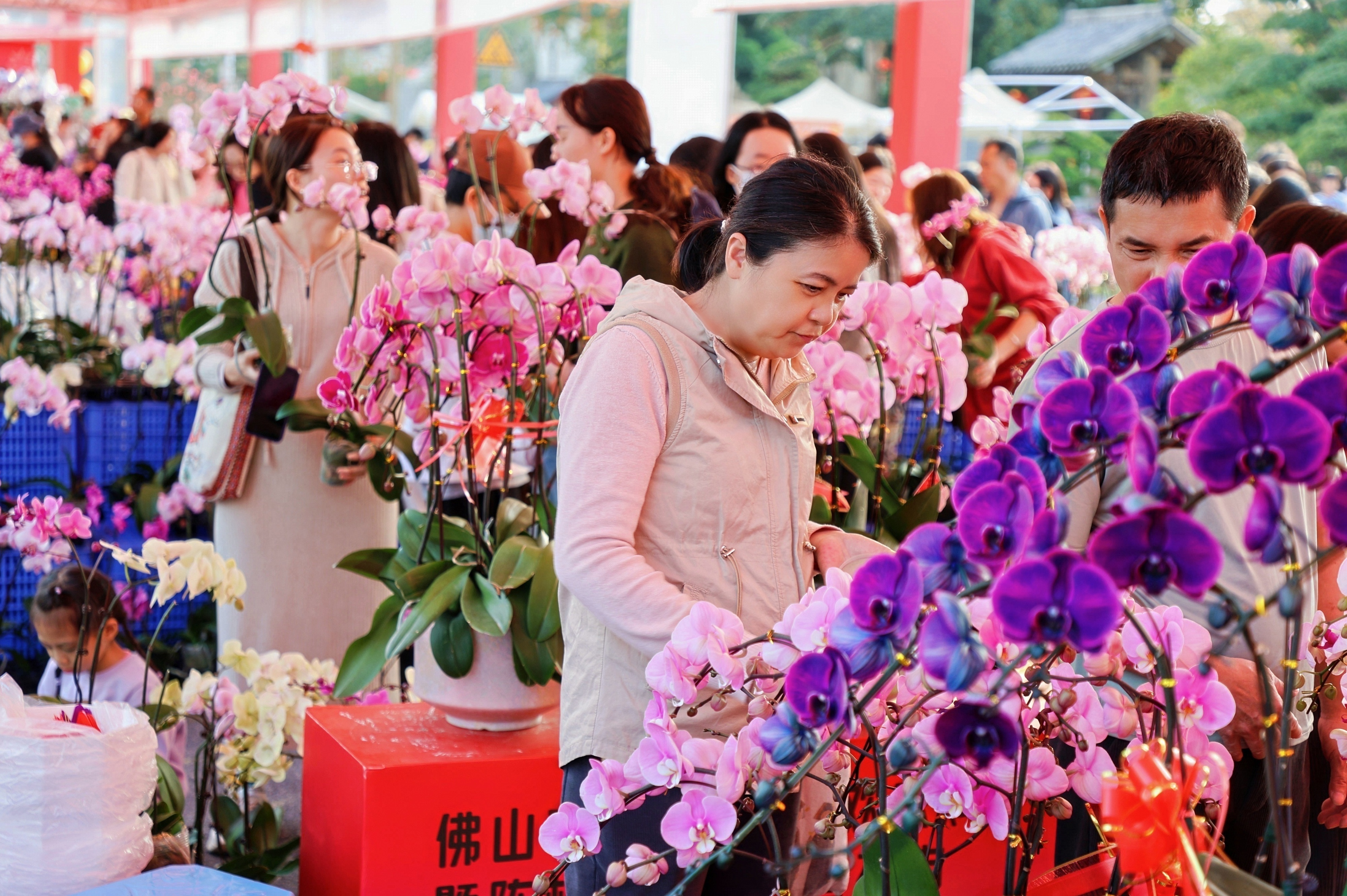 市民在陈村花市内寻味。/陈村宣办供图