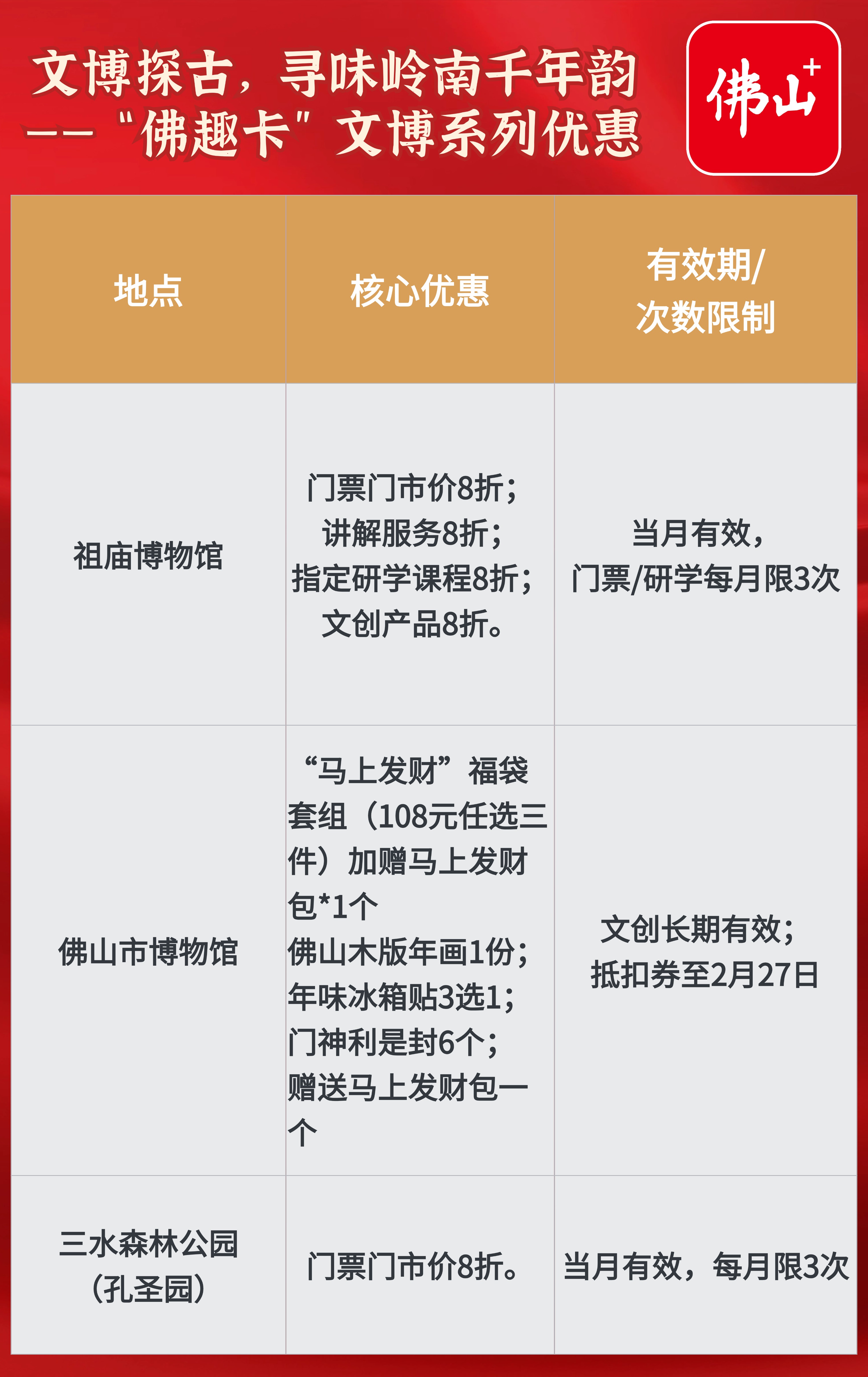 想要读懂佛山,必先从它的历史与文化开始。而佛山地标祖庙无疑是城市的名片。领取“佛趣卡”,您不仅能享受门票的实惠,更能以优惠参与深度研学、获取特色文创,让古老的智慧与技艺,成为可触碰、可带走的年味记忆!