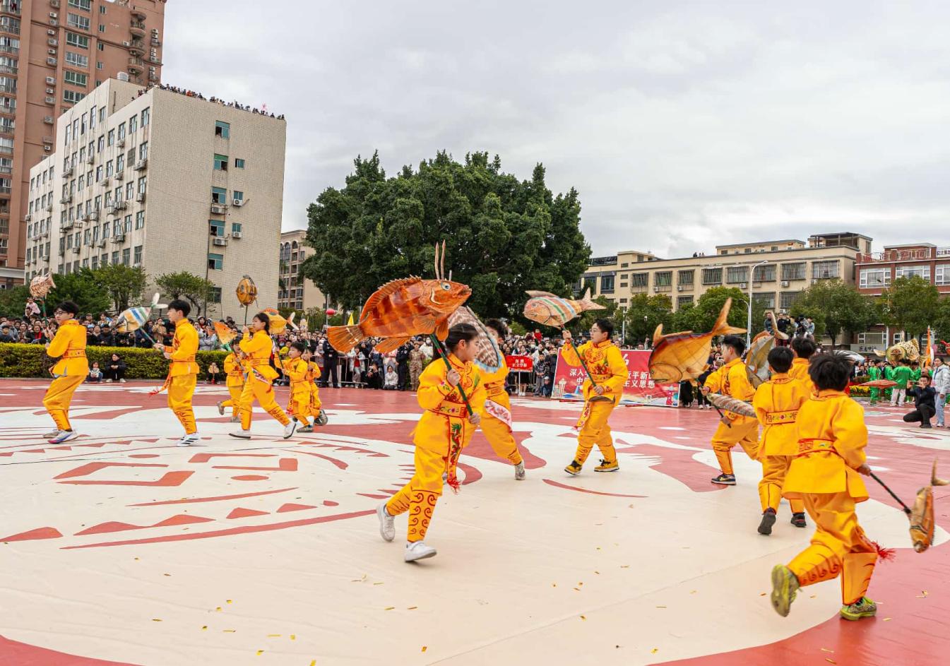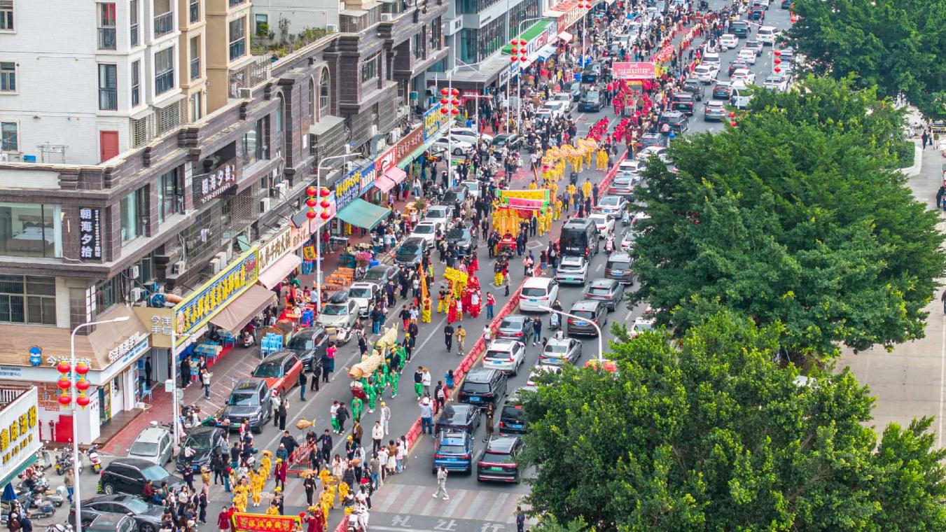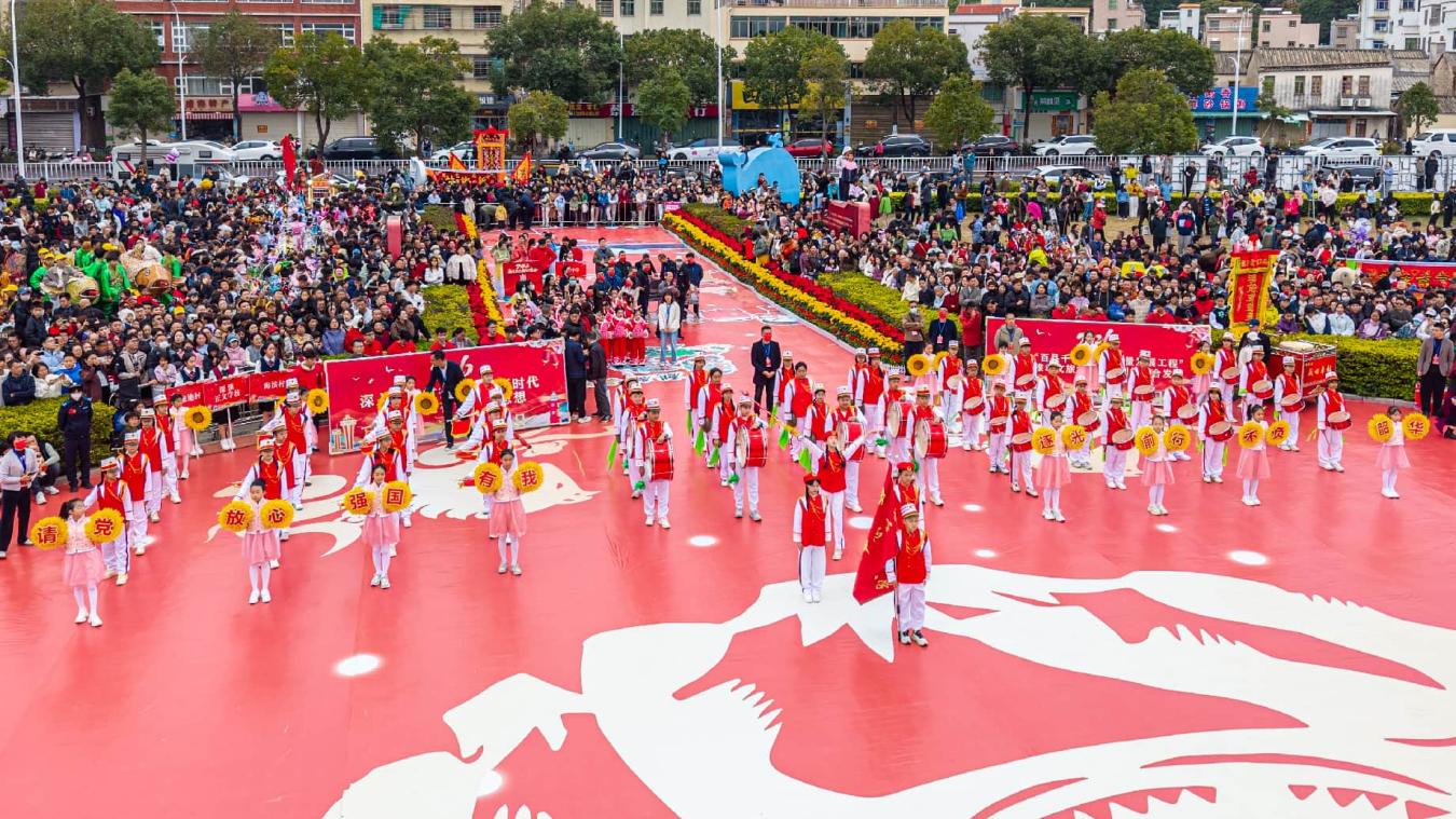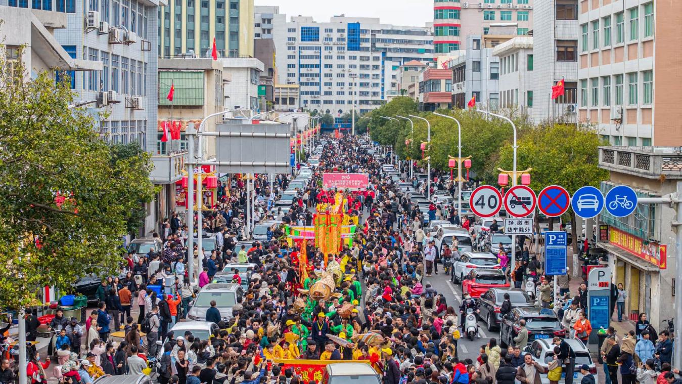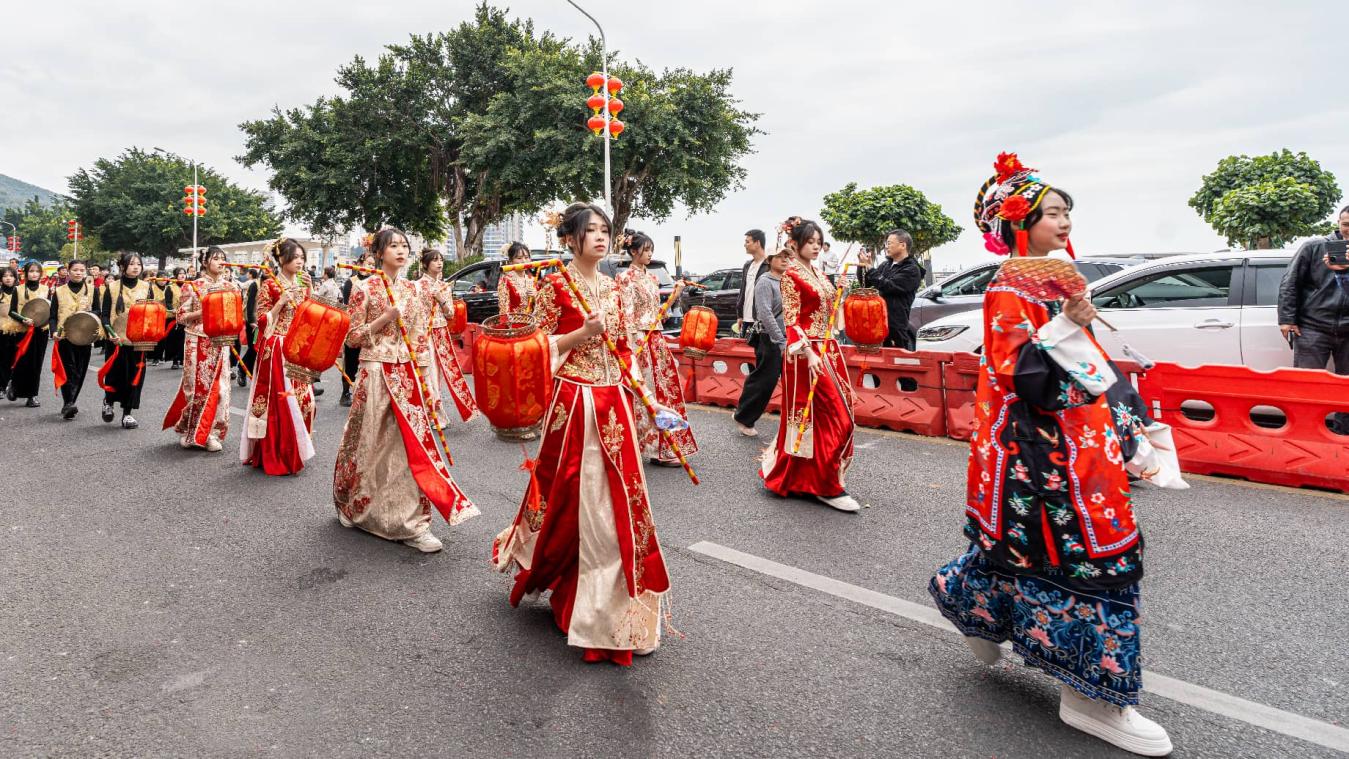 巡游队伍浩浩荡荡地从文化广场出发,一路载歌载舞,万众欢腾,既洋溢着过去一年丰收的喜悦,也寄托着对来年风调雨顺、国泰民安的美好祈愿。走在队伍最前方的是中国鼓队、鼓号队、福娃闹新春舞蹈队、盛世华章舞蹈队。他们身着靓丽的服装,舞姿灵动俏皮,笑容纯真灿烂,展现出海岛少年儿童奋发向上、朝气蓬勃的风采,展示出新时代青少年朝气蓬勃、昂扬向上、锐意进取的精神风貌。