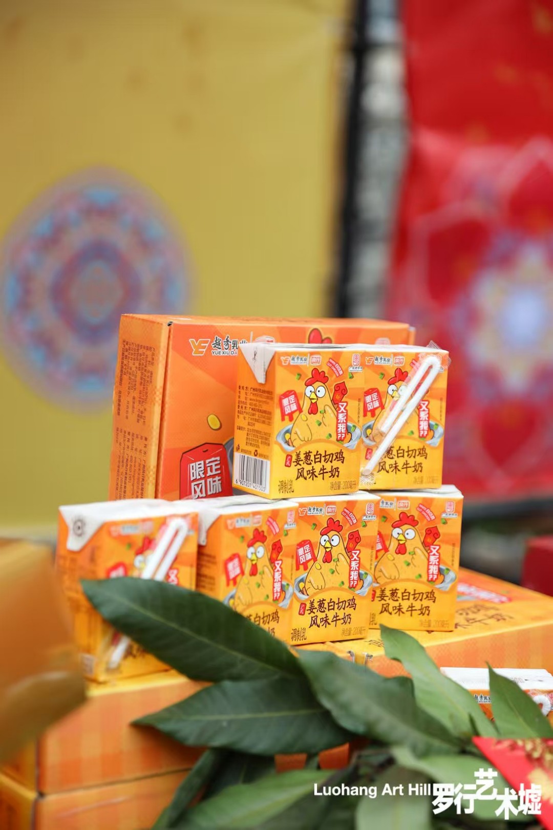 有人说,一代人有一代人的年货。而在罗行,这句话有了最生动的注脚。你可以在集市上偶遇今年火遍全网的“姜葱白切鸡风味牛奶”,猎奇又上头的口感,成了不少年轻人的“新年第一口惊喜”;也可以带走一筒“新年福豹抱抱筒”,或是寓意“马上有福”的创意手作,既有好意头,又有设计感。