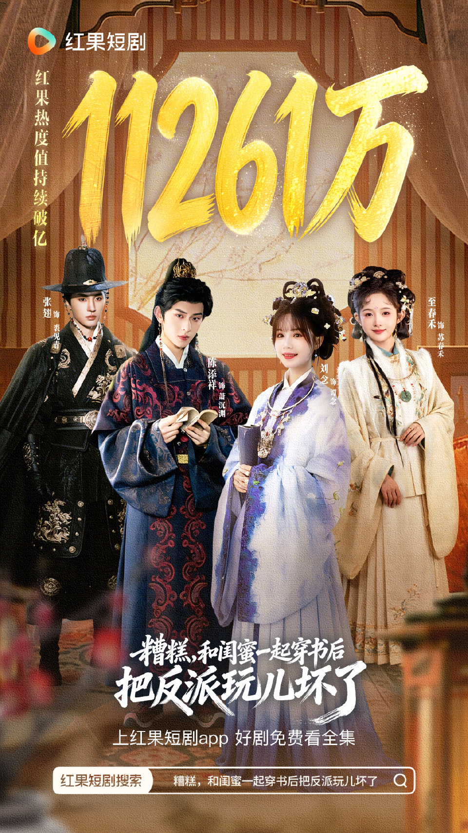 《糟糕,和闺蜜一起穿书后把反派玩儿坏了》以反套路喜剧突围,刘念、至春禾饰演的闺蜜联手坑惨陈添祥饰演的霸总反派,密集笑点与夸张演技成合家欢首选,2月15日上线后热度飙升。
