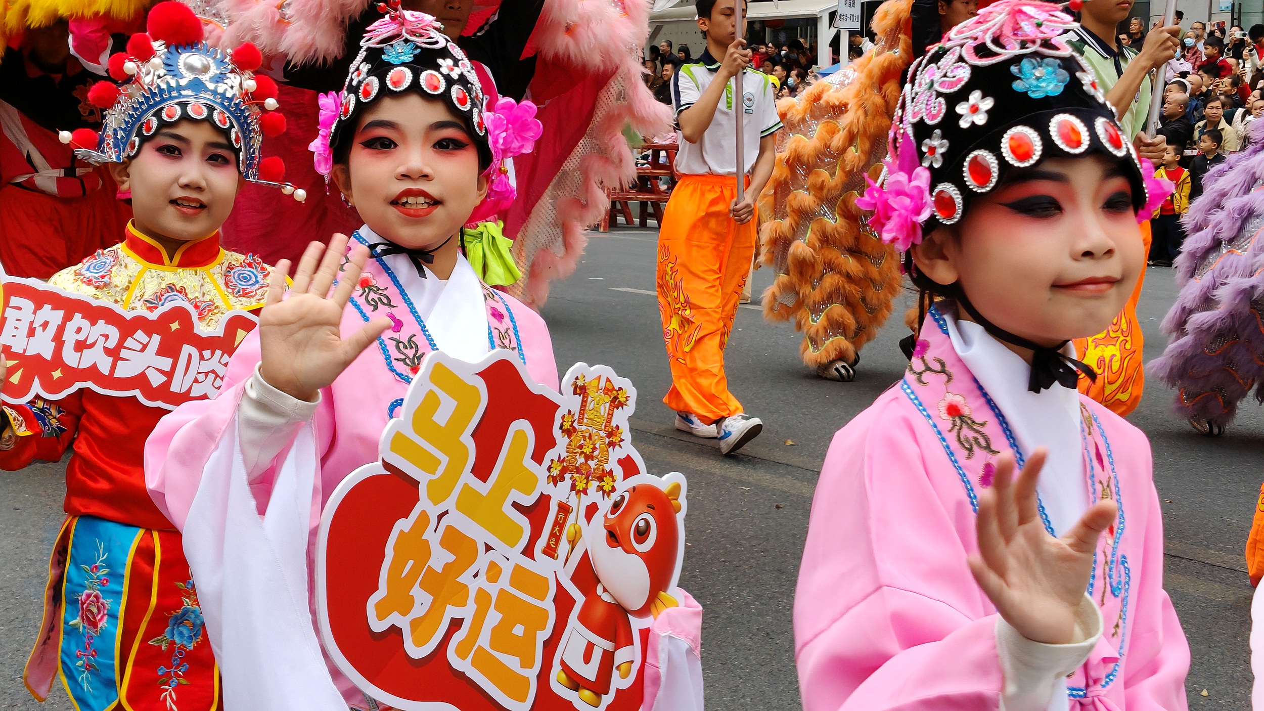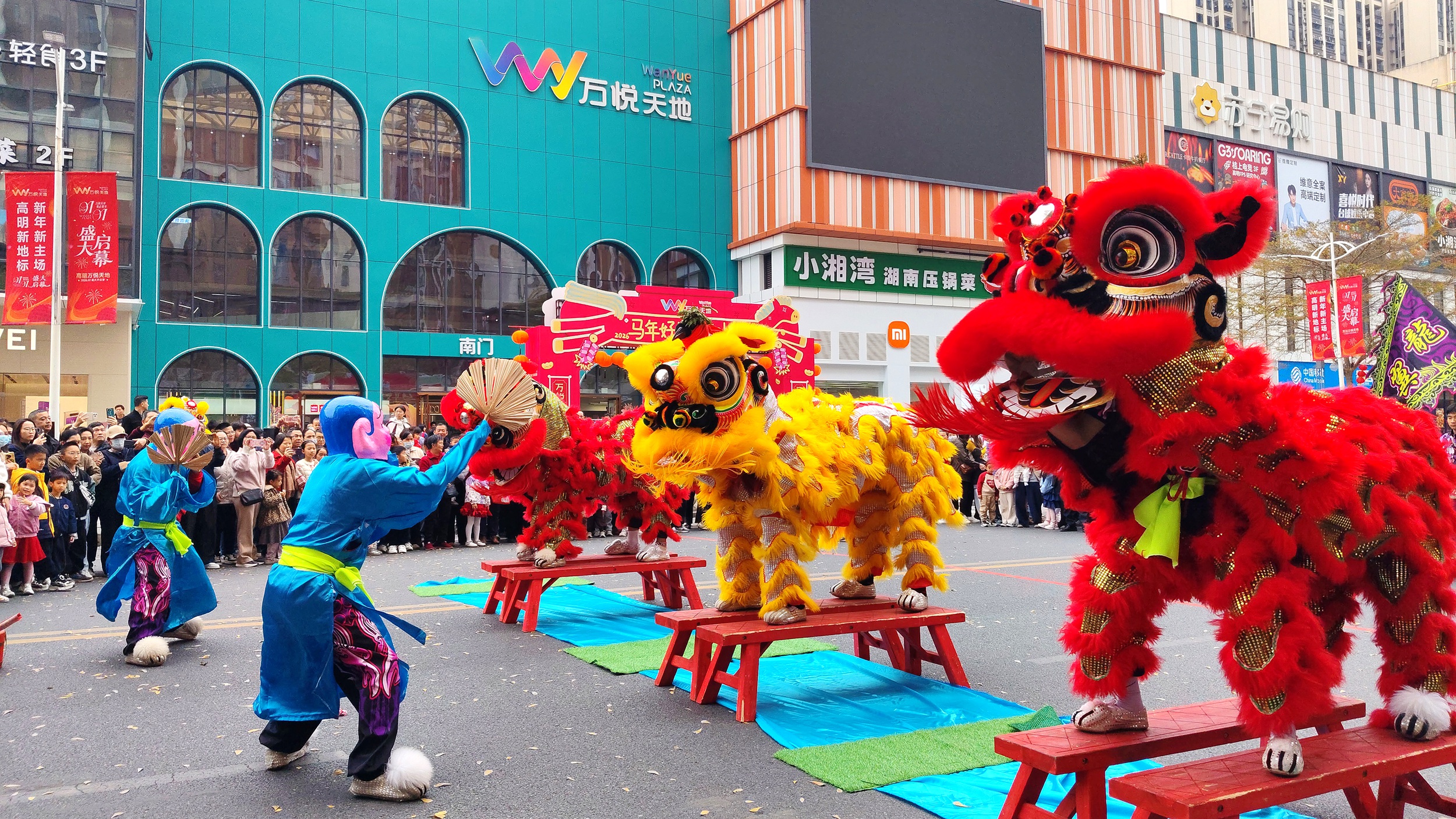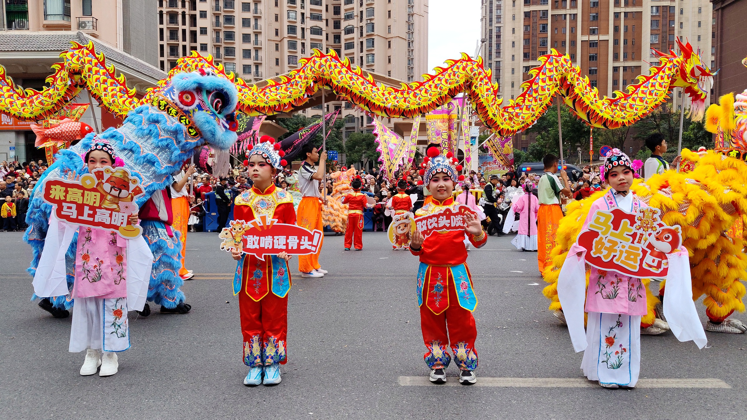 2月19日,大年初三,高明区荷城街道明国路锣鼓喧天、龙腾狮跃。融合非遗文化、民俗展演与消费场景的2026年高明区龙狮武术新春巡游盛大举行。12支特色方阵轮番登场,从“百狮贺岁”到“锦鲤迎春”,从“智武争锋”到“萌趣欢乐”,处处洋溢着浓浓的年味与活力。