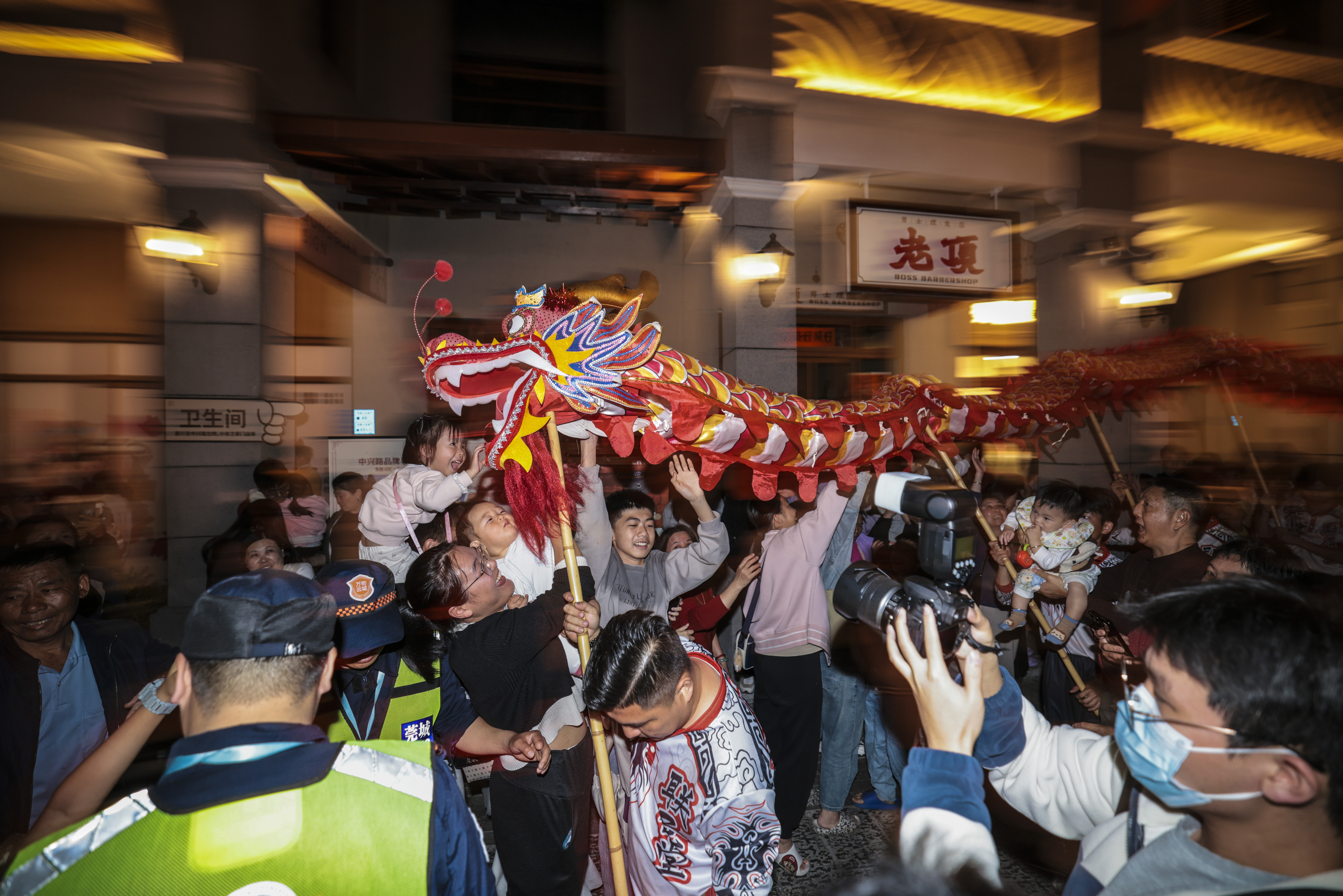 当晚最引人注目的,当属街区精心筹备的“舞龙巡游”民俗活动,这也是街区为市民游客送上的一份特别新春惊喜,让大家在沉浸式体验中感受最地道、最浓郁的岭南新春年味。