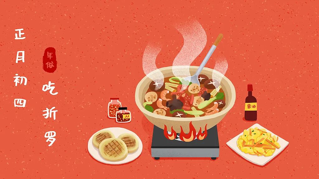 中国传统的习俗,大年初四这一天,全家人会聚在一起吃“折罗”。所谓“折罗”,就是宴会剩余的饭菜。是老北京以及河北地区的一个特有名词,张寿臣《化蜡千儿》中有记:“老太太晌午吃的散伙面,晚上吃的折罗。”