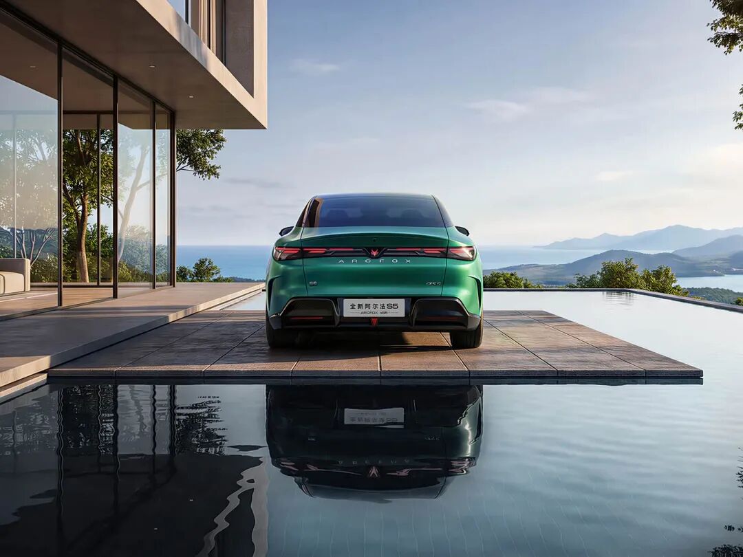 作为年度改款车型,新款极狐阿尔法S5整体外观保持不变,主要针对细节进行调整,较新款车型相比更加时尚。新车继续采用封闭式前格栅,前包围有所变化,两侧采用双C字形导流槽和扁平的进气口,搭配两侧狭长的大灯组有着不错的运动感。根据官图来看,新车还将搭载可闭合式进气格栅。同时,其前舱盖隆起多条筋线,适当增加车辆肌肉感。车尾后包围样式进行调整,两侧也同步加入通风口样式的饰条,并在中央加入可点亮的极狐品牌LOGO,视觉层次感丰富。官方展示的图片中,新款极狐阿尔法S5采用全新的绿/黑双色涂装,车门把手仍为隐藏式设计,搭配全新样式的密辐式双色轮圈以及双色车身,整体十分年轻。尺寸方面,新车长宽高分别为4820(4886)/1930/1480mm,轴距为2900mm。