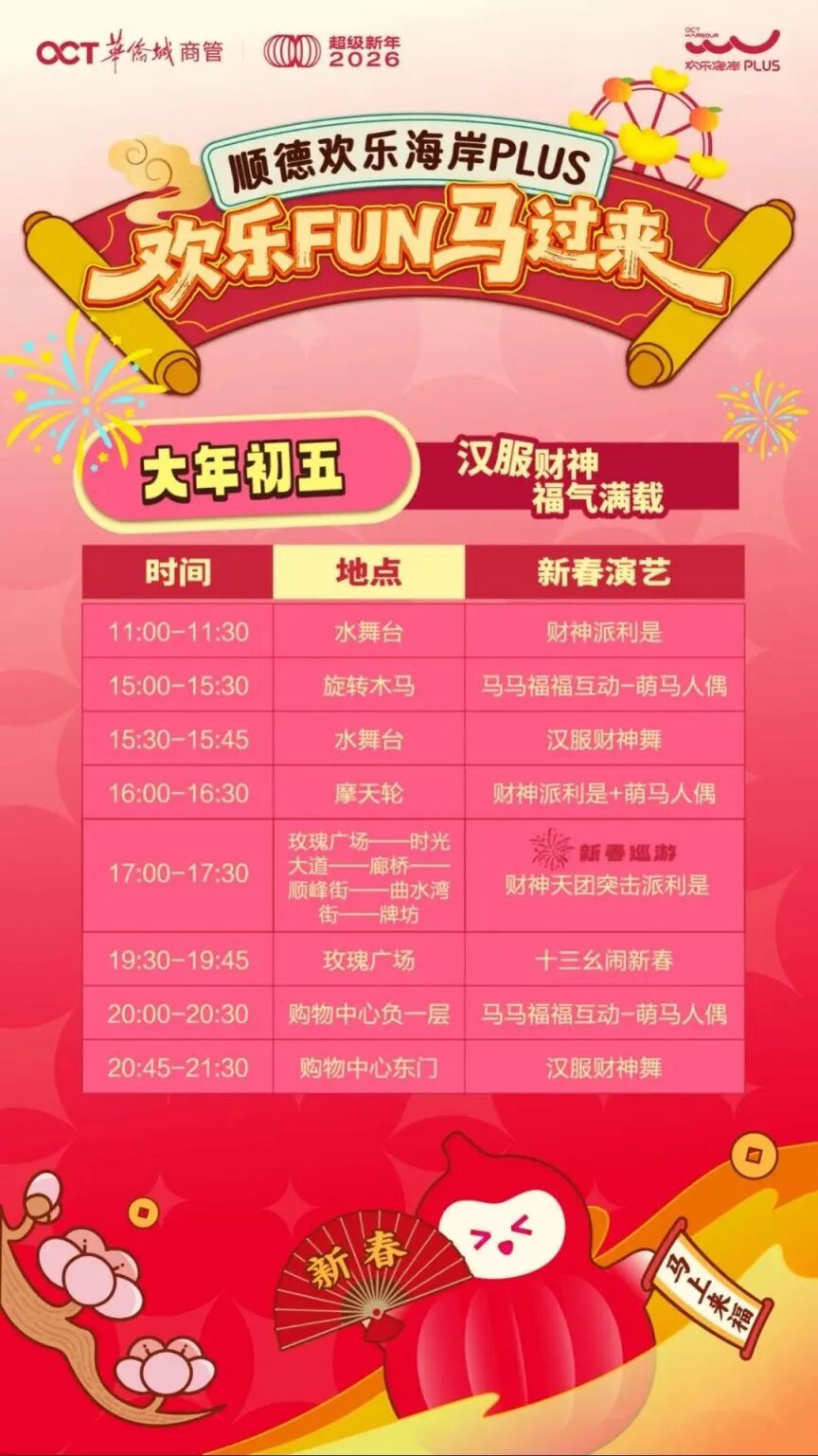 璀璨夜空庆初五!欢乐海岸的烟花秀准时绽放,财神天团携汉服十二财神、财神马、十三幺雀神等NPC巡游……看完烟花逛园区,打卡各类游乐设施,晚风习习,快乐翻倍,氛围感直接拉满!