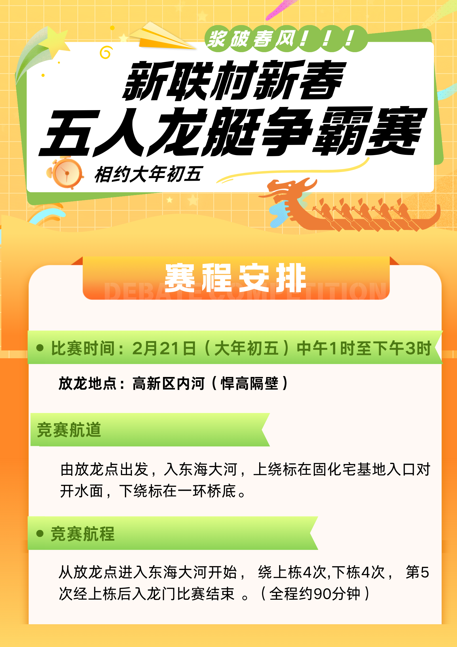 2月21日(正月初五)杏坛新联村春节5人龙艇邀请赛在东海大河新联段燃情开赛38艘龙艇齐聚一堂、以热血竞技点燃新春年味为市民呈现一场兼具观赏性与氛围感的民俗体育盛宴。