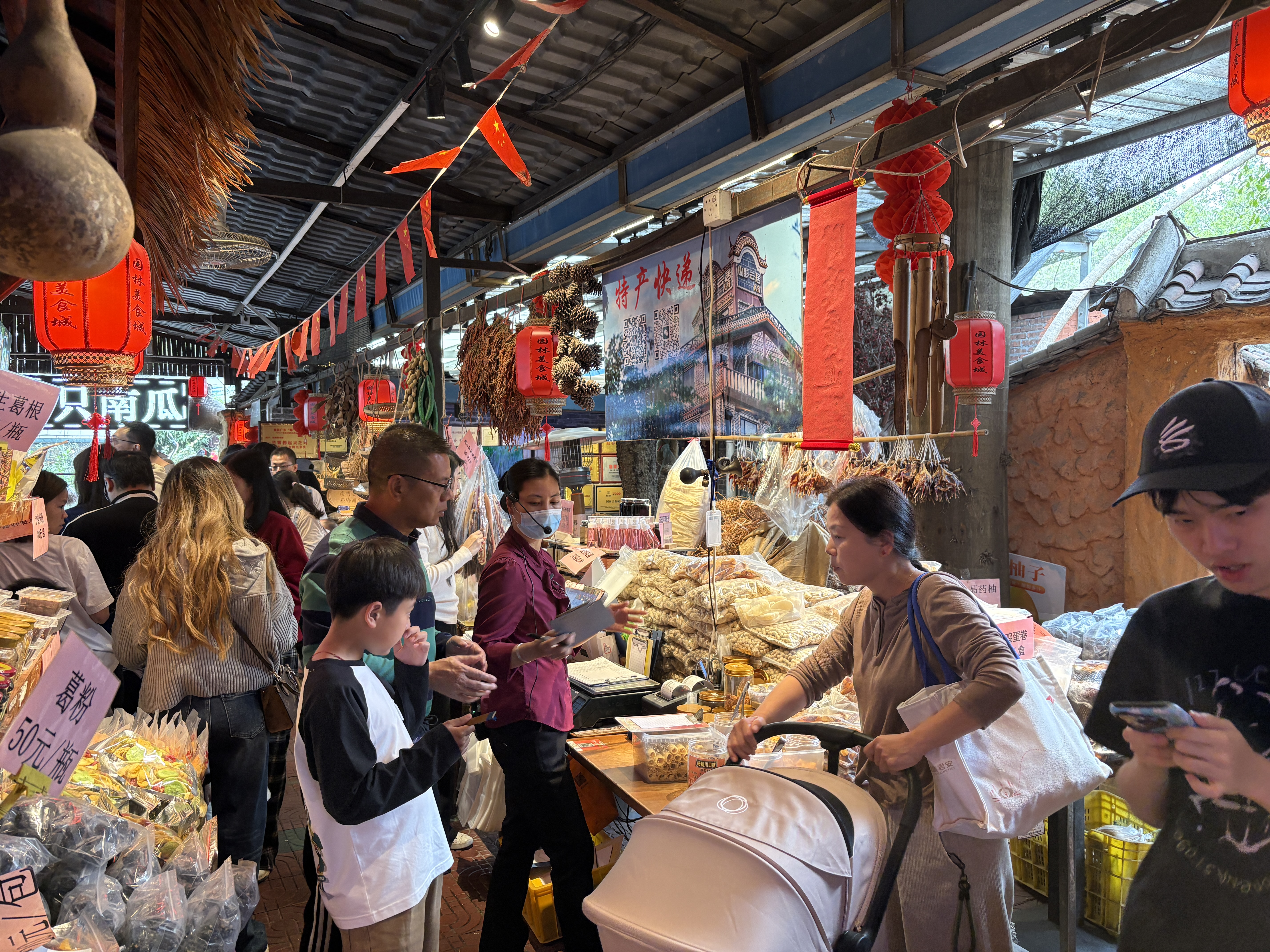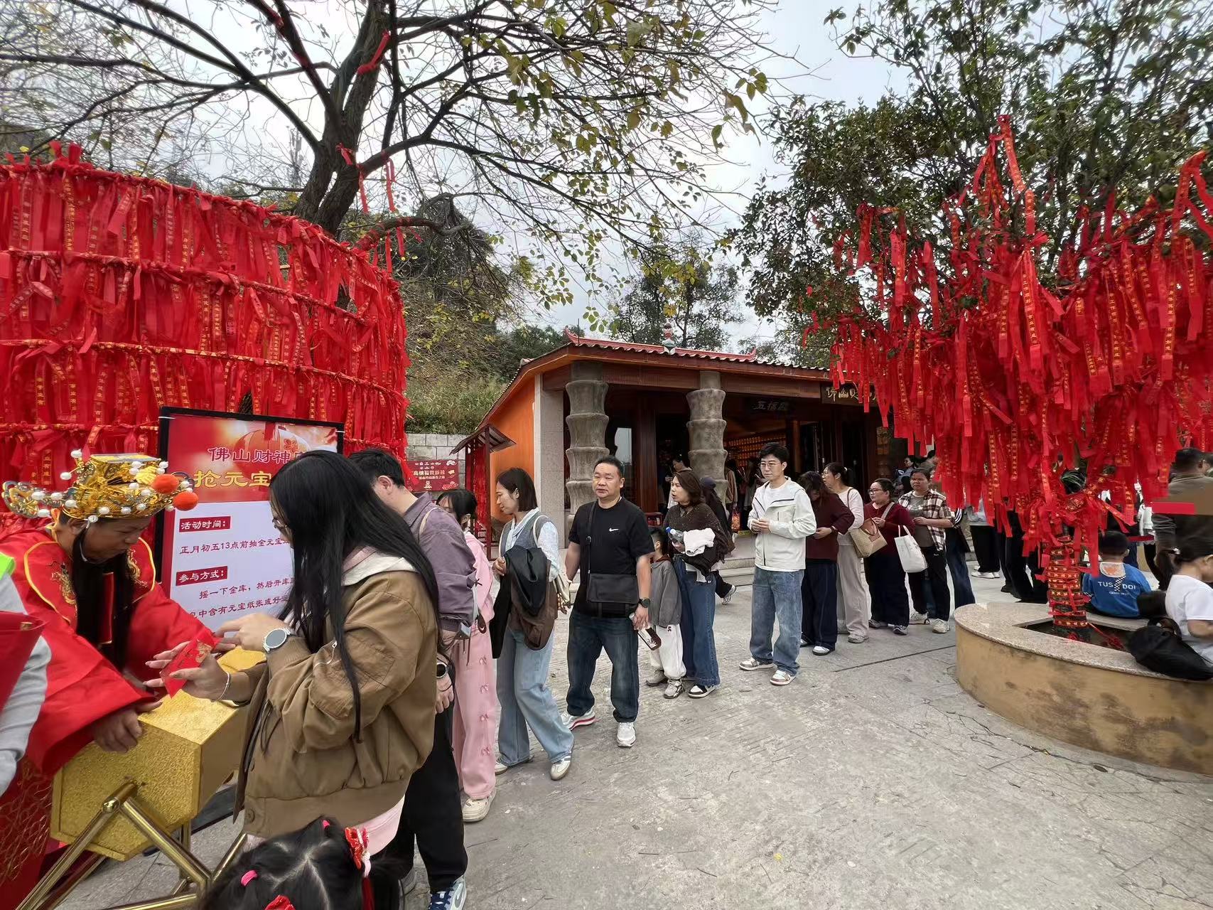 中午时分,南丹山依旧人山人海,景区负责人介绍,不少外地游客前来抽金元宝,登高祈福,纷纷点赞这里年味十足。