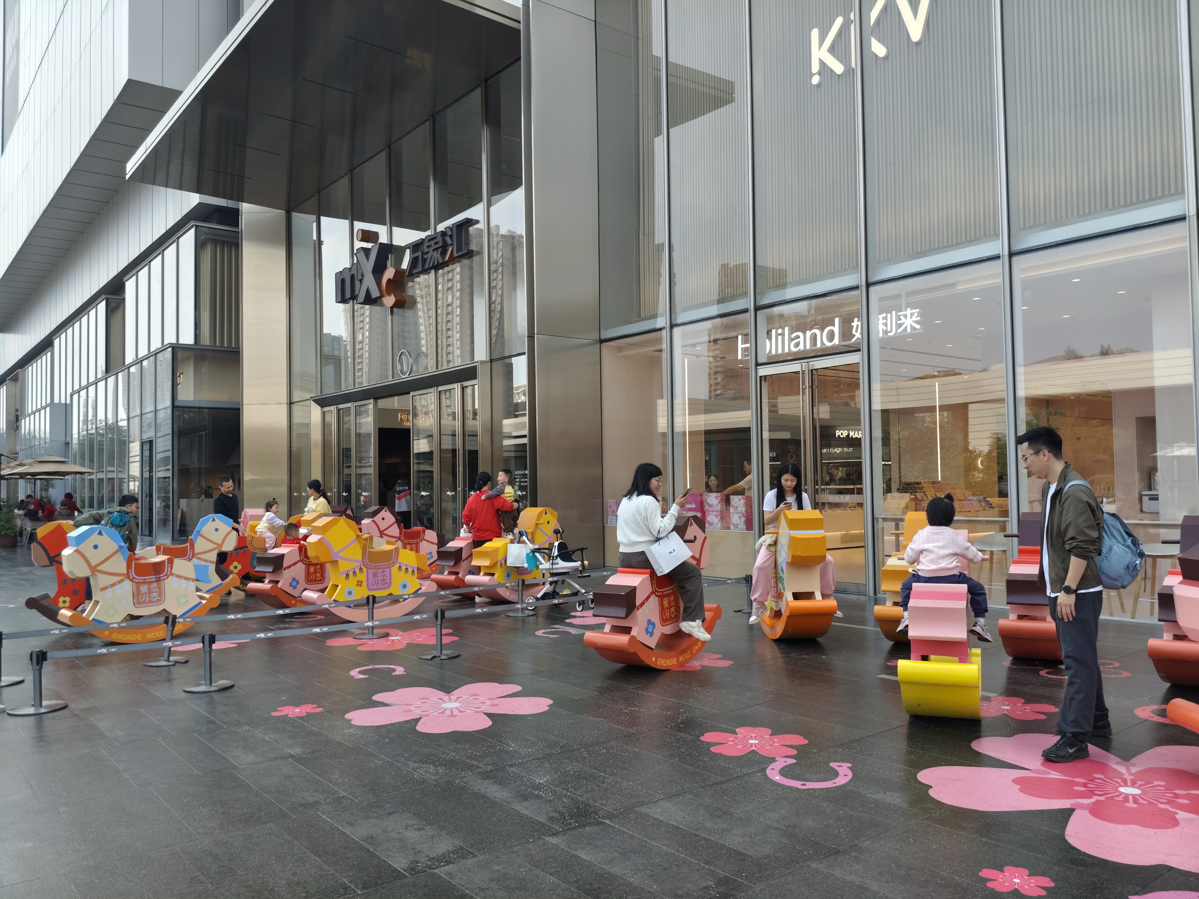 大年初五:不少市民游客与家人朋友一起乘坐佛山地铁三号线来到顺德万象汇,打卡巨型木马,感受马年新春的热闹氛围,商圈人气持续火爆。