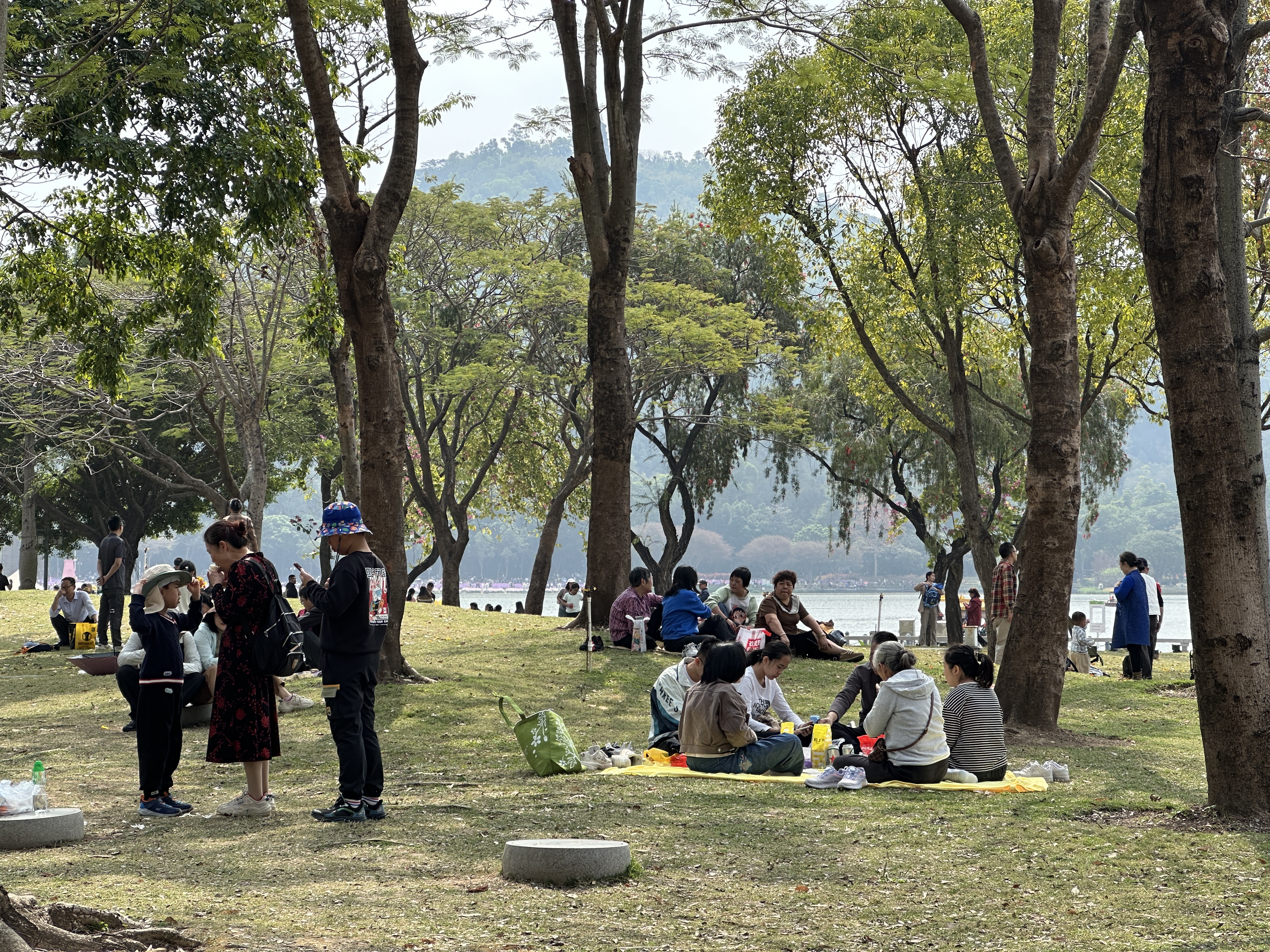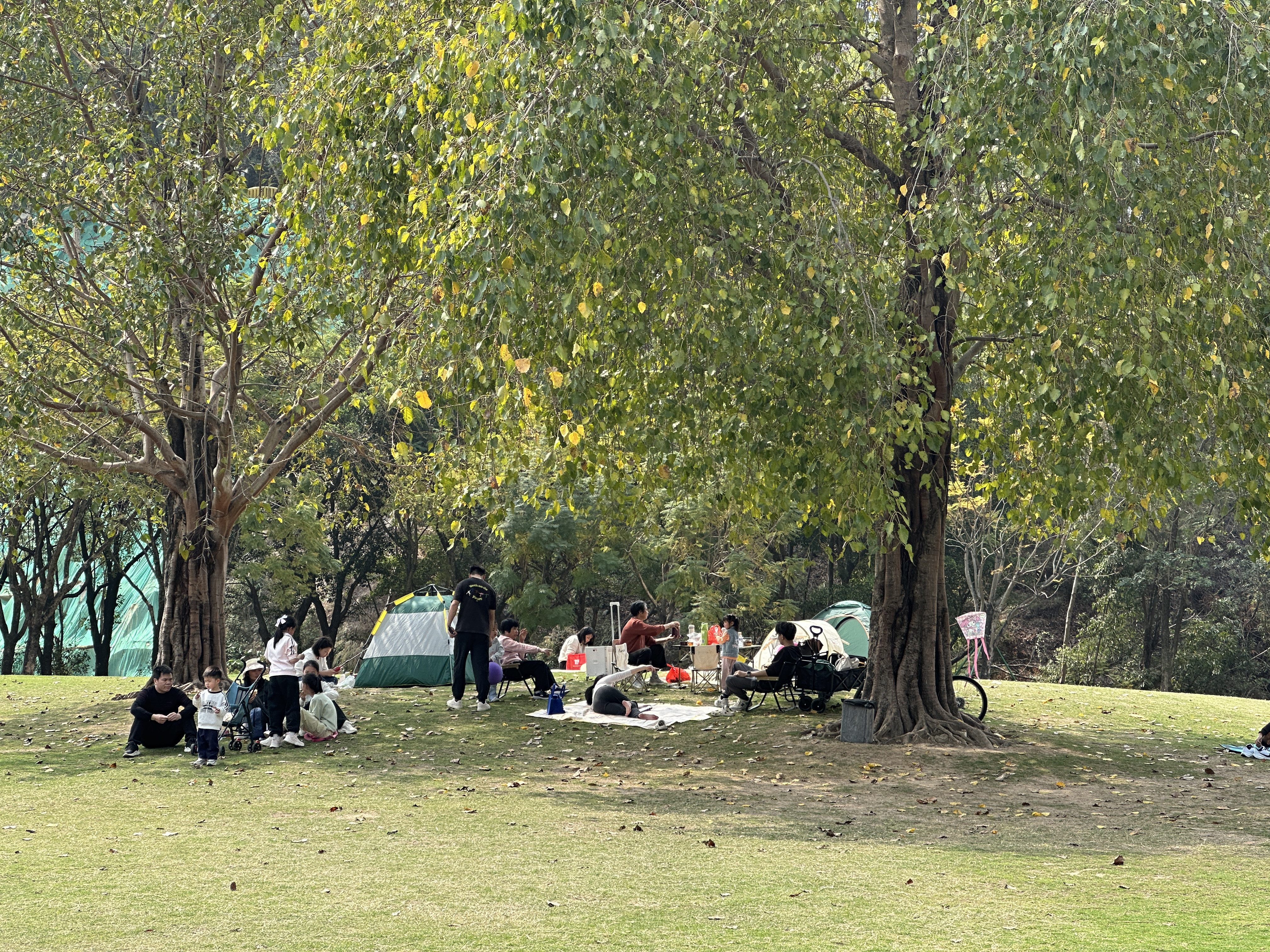 中午时分,不少市民游客与家人朋友一起来到顺峰山公园露营健身。