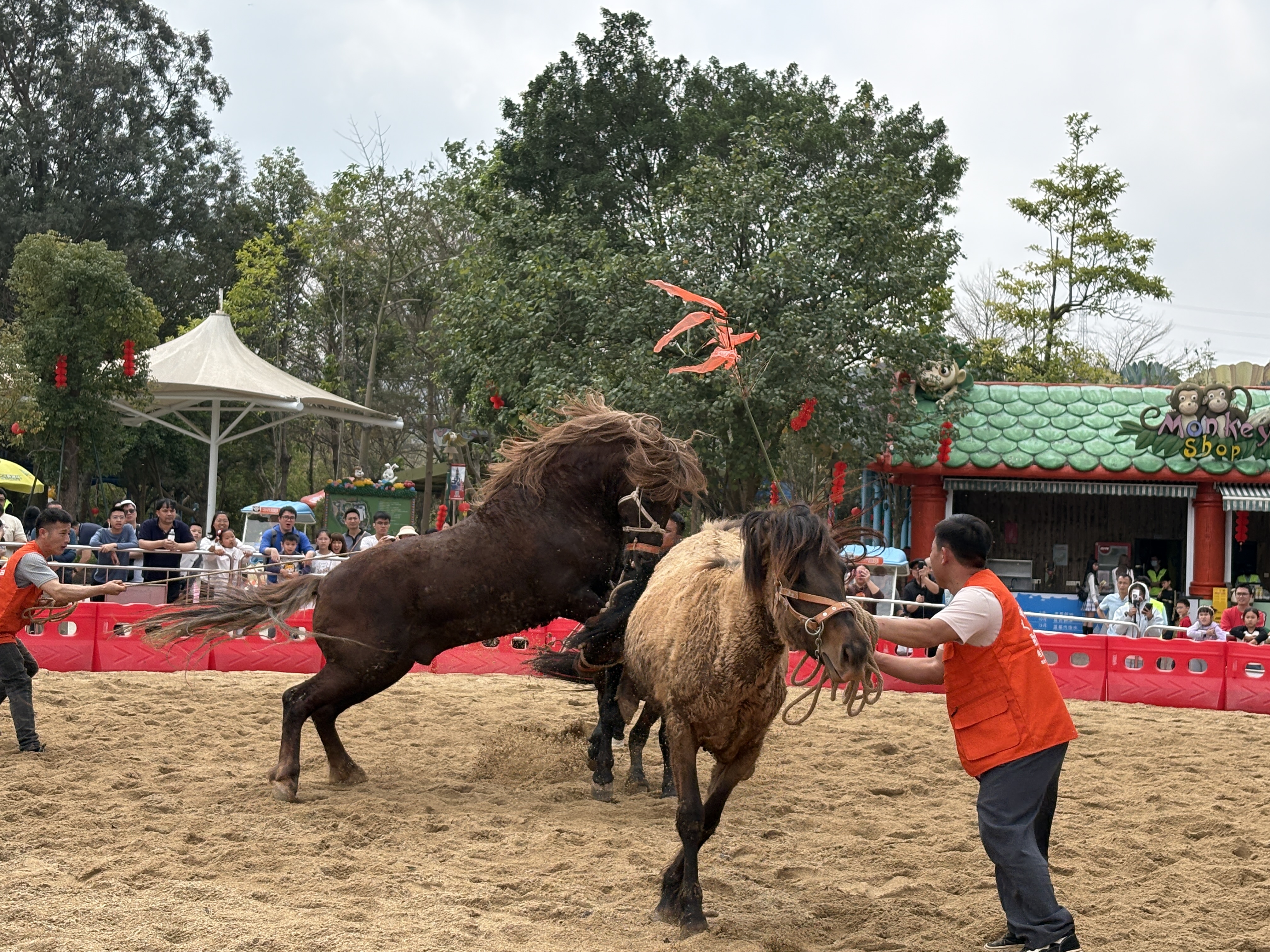 马年看马,高明鹭湖非遗赛马够应节,大年初五游客接完财神观赛马,连锁酒店第四天满客。