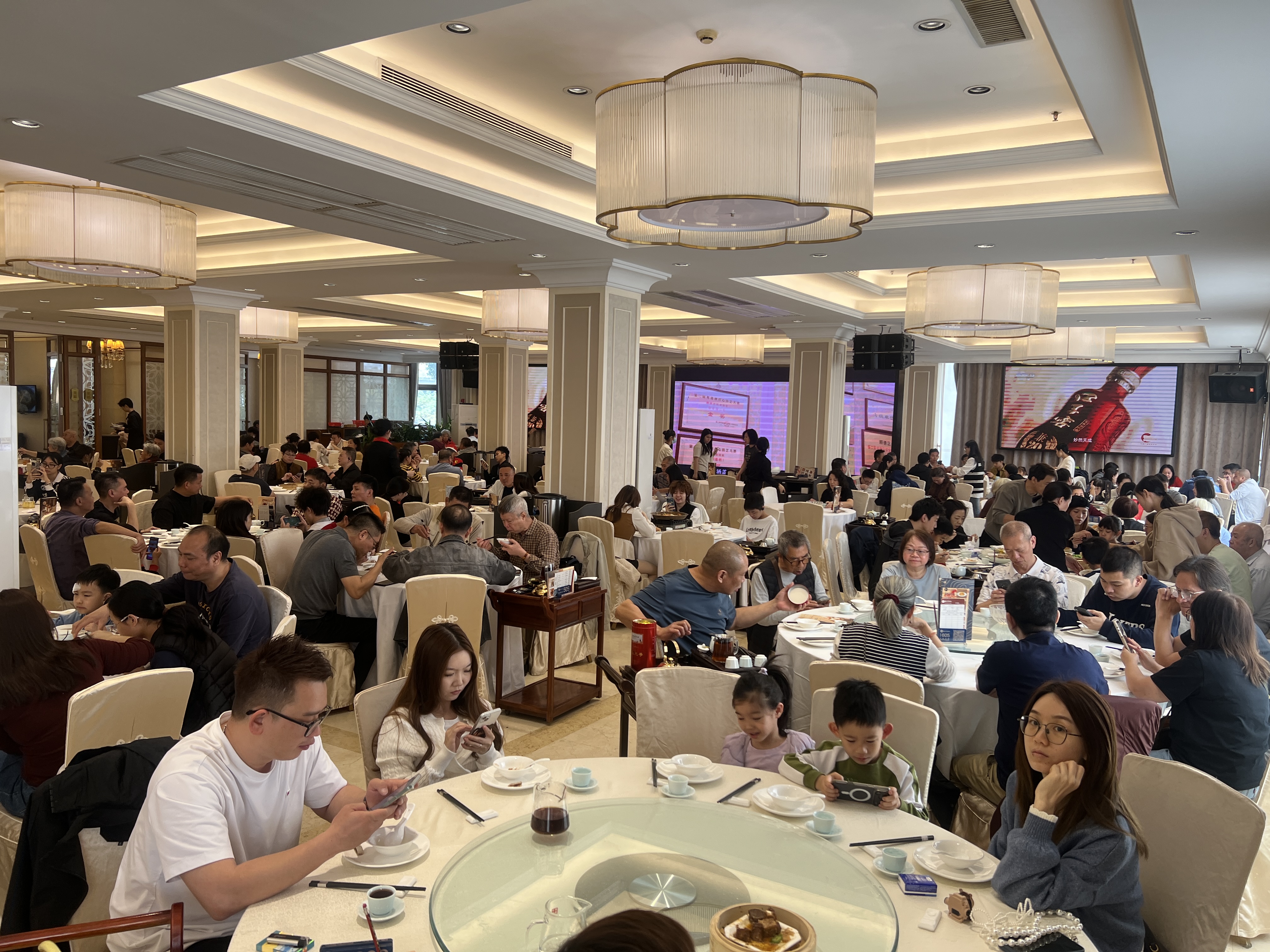 顺德龙悦湾酒楼挤满饮茶食客,其中不少来自深圳、中山、东莞等游客前来叹早茶品美食。