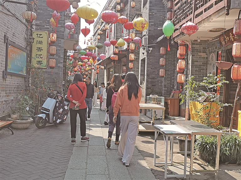 踏入牙香街,仿佛推开了一扇通往明清繁华的时光之门,古朴典雅中透着浓浓的年节氛围。古来常说“沉檀龙麝”,“沉”即指沉香,自古便是四大名香之首,而莞香正是沉香中的佼佼者,是当之无愧的岭南珍宝。新春期间漫步于此,奇异芬芳漂浮在街道上空,好一派“香市”繁华景象。