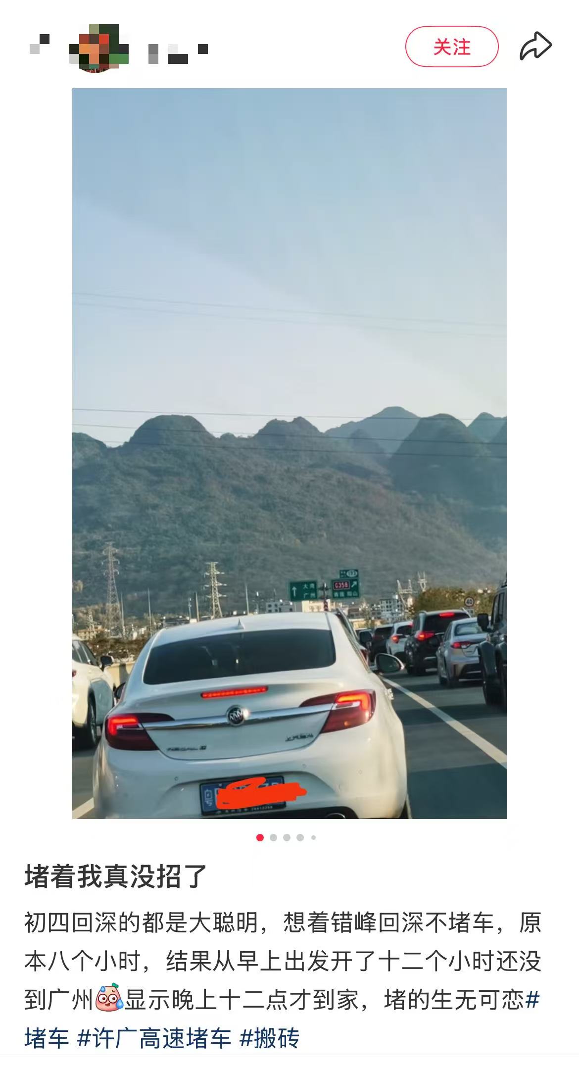 昨天大年初四(20日)14时许,深圳特区报&读特记者在梧桐山道立交看到,经武深高速转惠深沿海高速前往大鹏半岛的车流较为密集,出现短时间缓行。“本以为假期结束还有几天,路上的车应该不多,但没想到有的路段还是车比较多,要排队。”带着父母在坝光银叶树湿地园游玩的市民梁先生说,该景区停车场停车位当天上午就已经饱和,停车只能另找停车场。