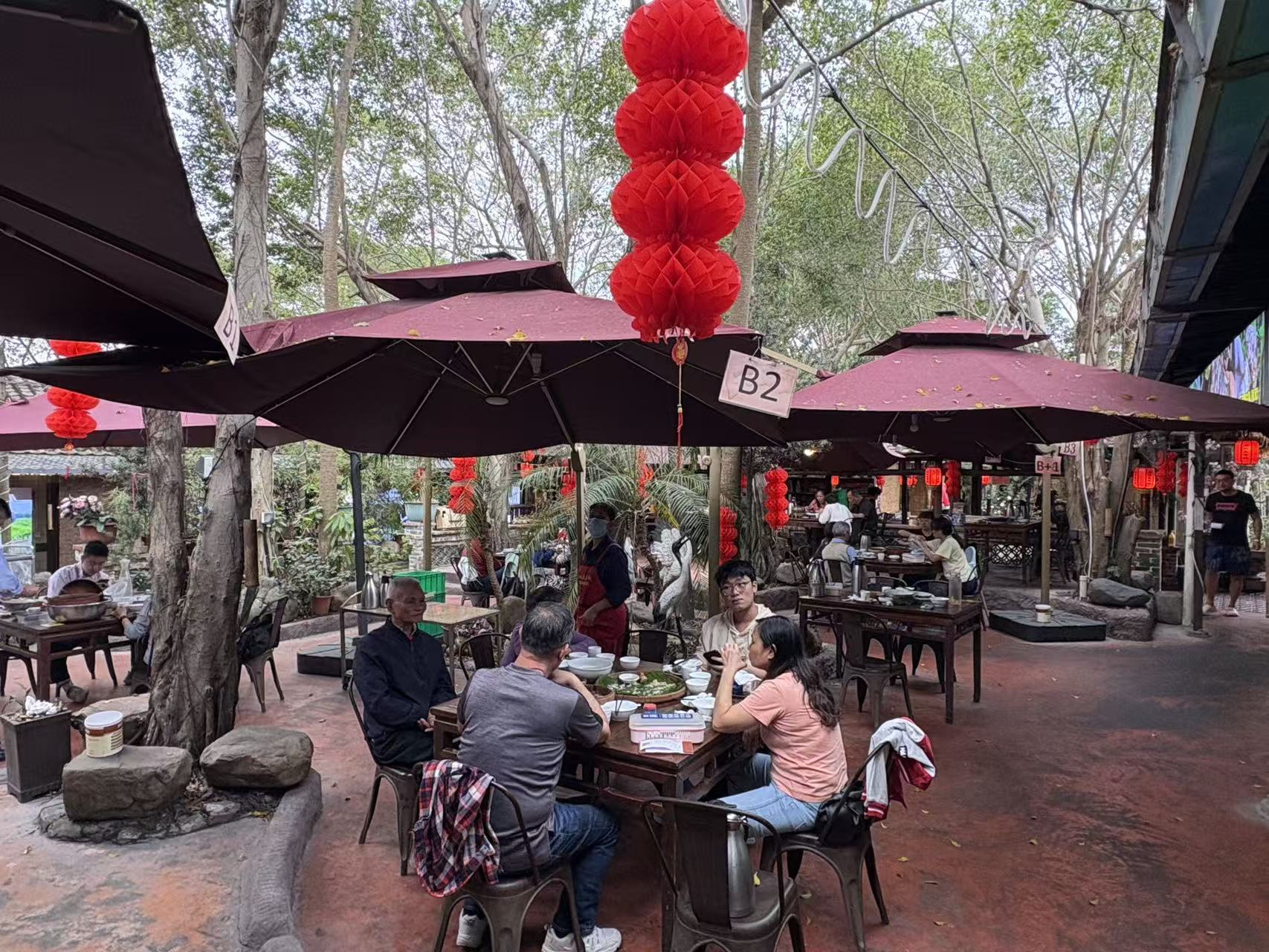 景区人气爆棚,餐饮市场同样“热气腾腾”。在园林美食农家乐,中午一点多仍宾客盈门,客人来了一批又一批。尽管增加了人手,工作人员依然忙得“踢晒脚”。农家乐负责人李志芬笑着说:“从年初一开始到今天,生意十分好。游客来自四面八方,高明今年旅游项目多,文旅项目多,玩的项目多,大家都愿意来这里过年。”