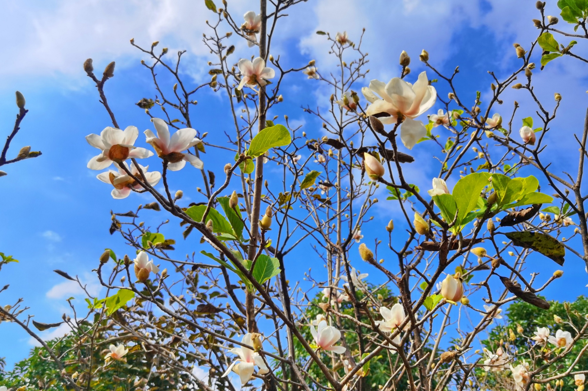这份早春美景,更藏着跨越时光的古韵。玉兰又名望春、应春花,是岭南早春最守信的“春之信使”,每年二月如期绽放,在百花尚未苏醒时独傲枝头,恰如文徵明笔下“绰约新妆玉有辉,素娥千队雪成围”的绝美意境。